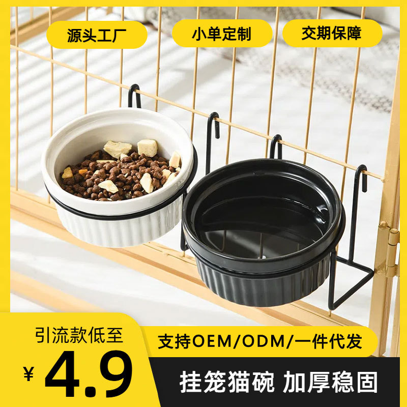 고양이 그릇 전복 방지 고양이 먹이 분지 교수형 마시는 그릇 세라믹 고정 개 분지 교수형 케이지 애완 동물 그릇 강아지 새끼 고양이