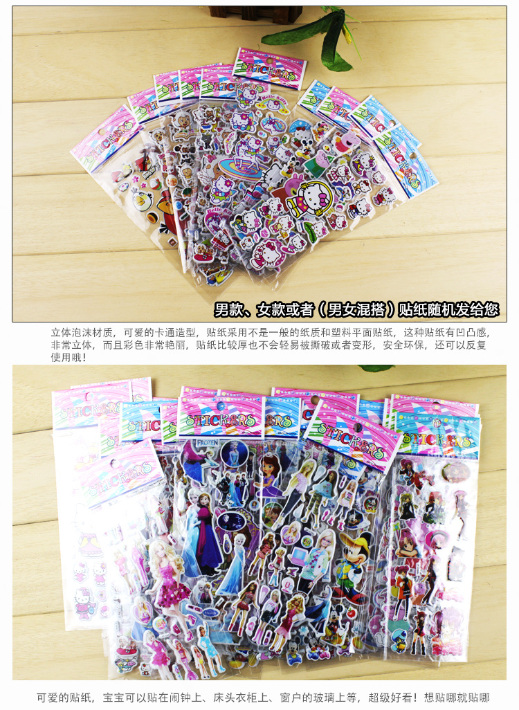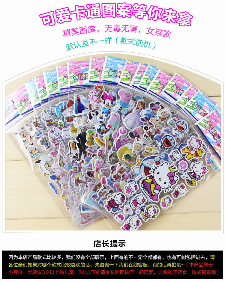 어린이 만화 애니메이션 거품 스티커 유치원 보상 학생 상품 입체 스티커 아기 선물 도매스토어 가기
