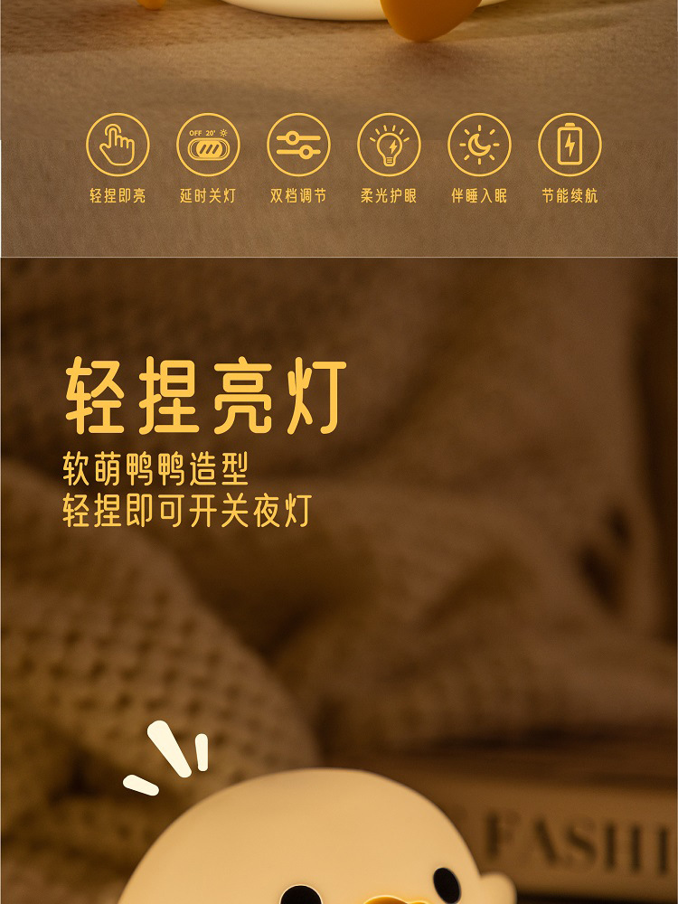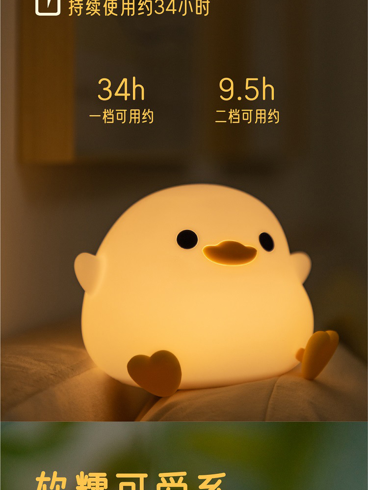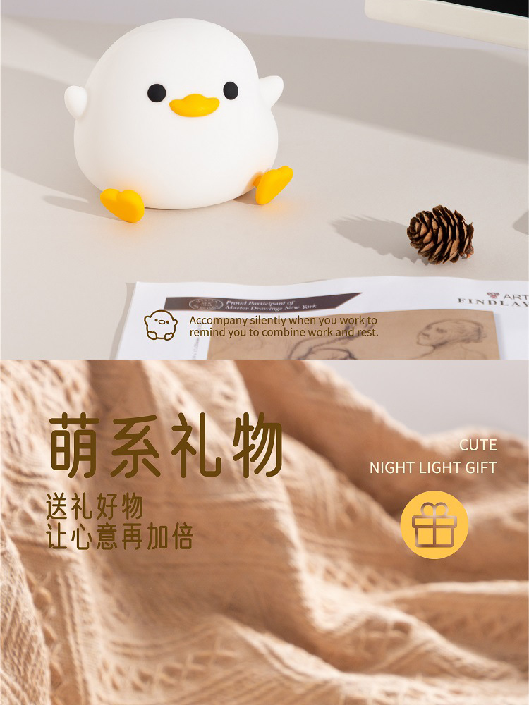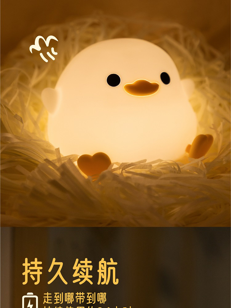 Doudou 오리 밤 빛 실리콘 팻 라이트 어린이 귀여운 수면 침실 충전 창조적 인 선물 생일 침대 옆 램프