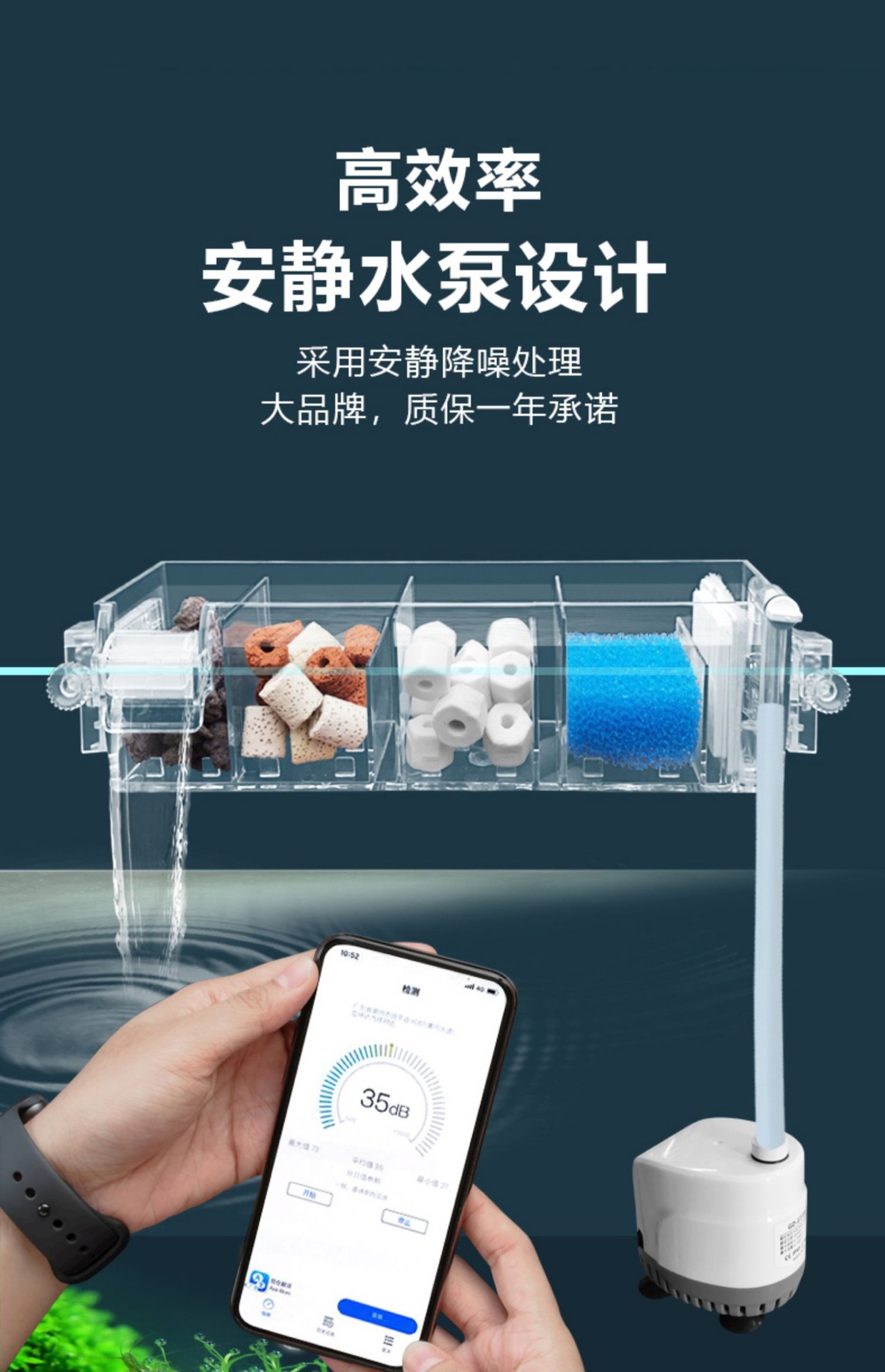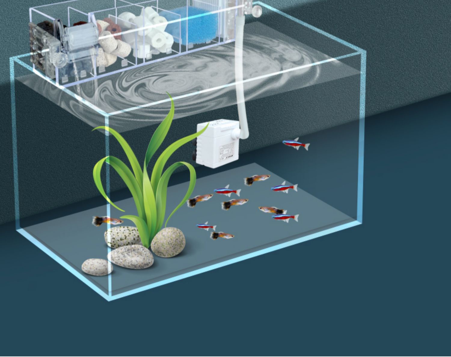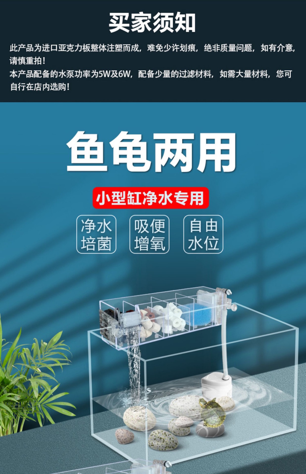 Jinlijia 어항 필터 산소 필터 통합 기계 낮은 수위 벽 장착 순환 시스템 3 대 1 거북이 탱크스토어 가기