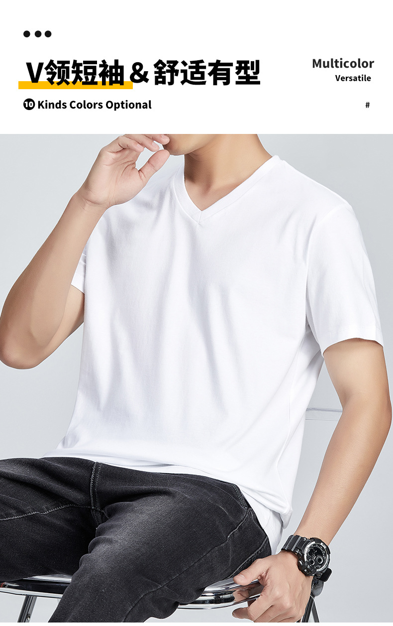 슬림 핏 팩토리 다이렉트 솔리드 컬러 V-넥 반팔 티셔츠 한국 남성 젊은 남성 티셔츠 루즈한 면 티셔츠 남성 티셔츠