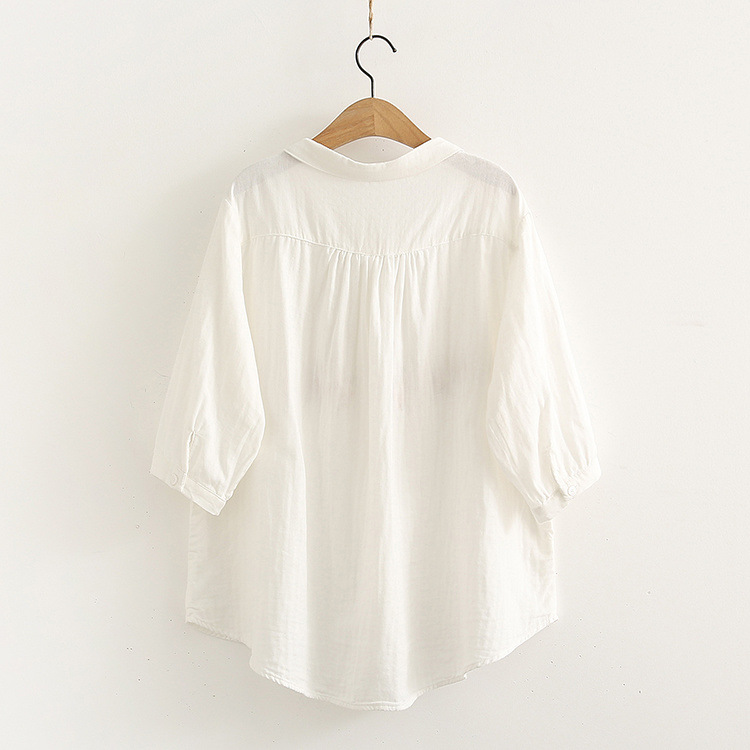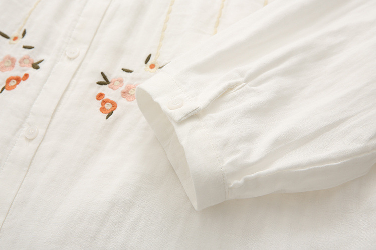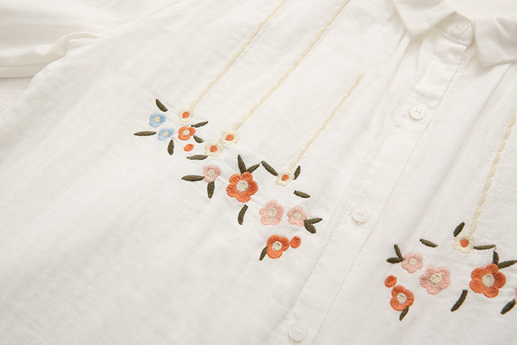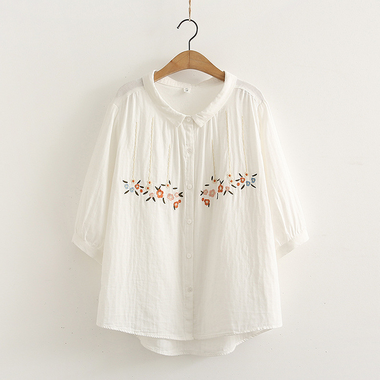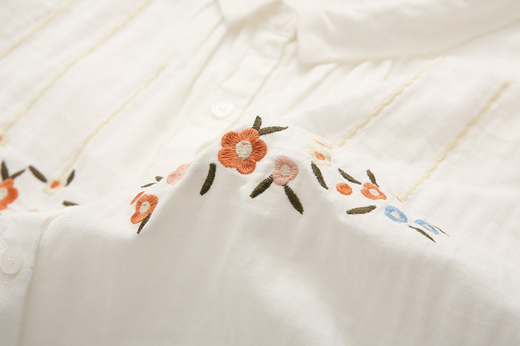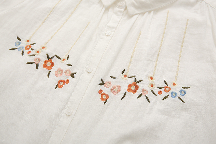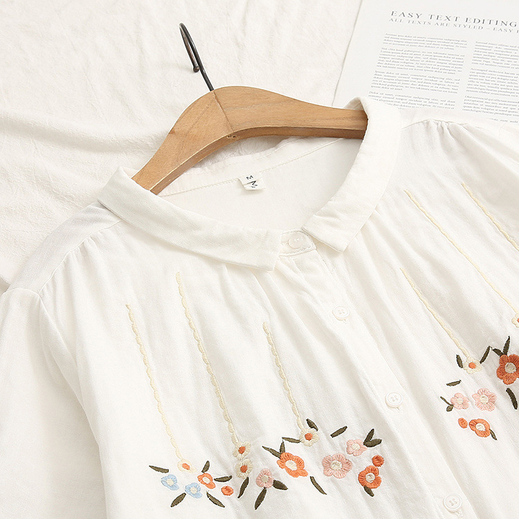 일본의 새로운 만화 수 놓은 꽃 작은 옷깃 반팔 느슨한 셔츠 여학생을위한스토어 가기