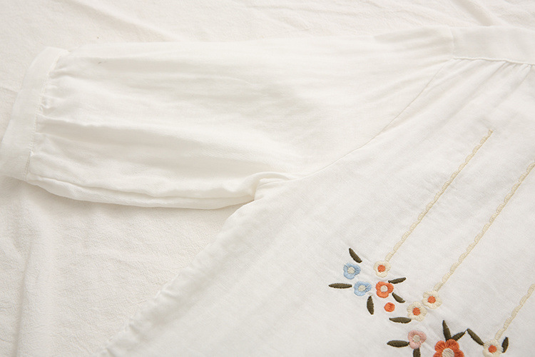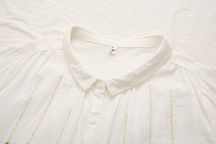 일본의 새로운 만화 수 놓은 꽃 작은 옷깃 반팔 느슨한 셔츠 여학생을위한