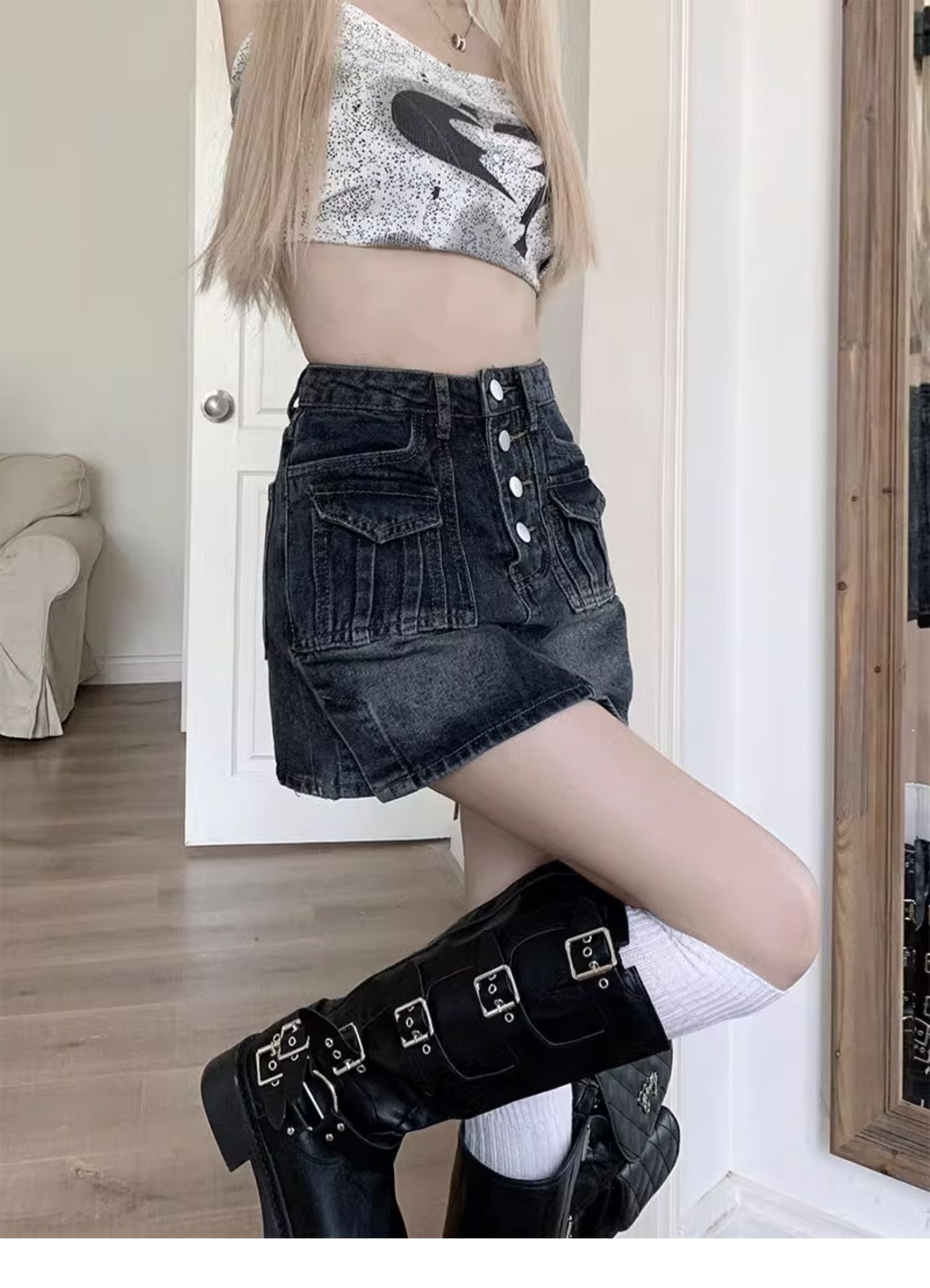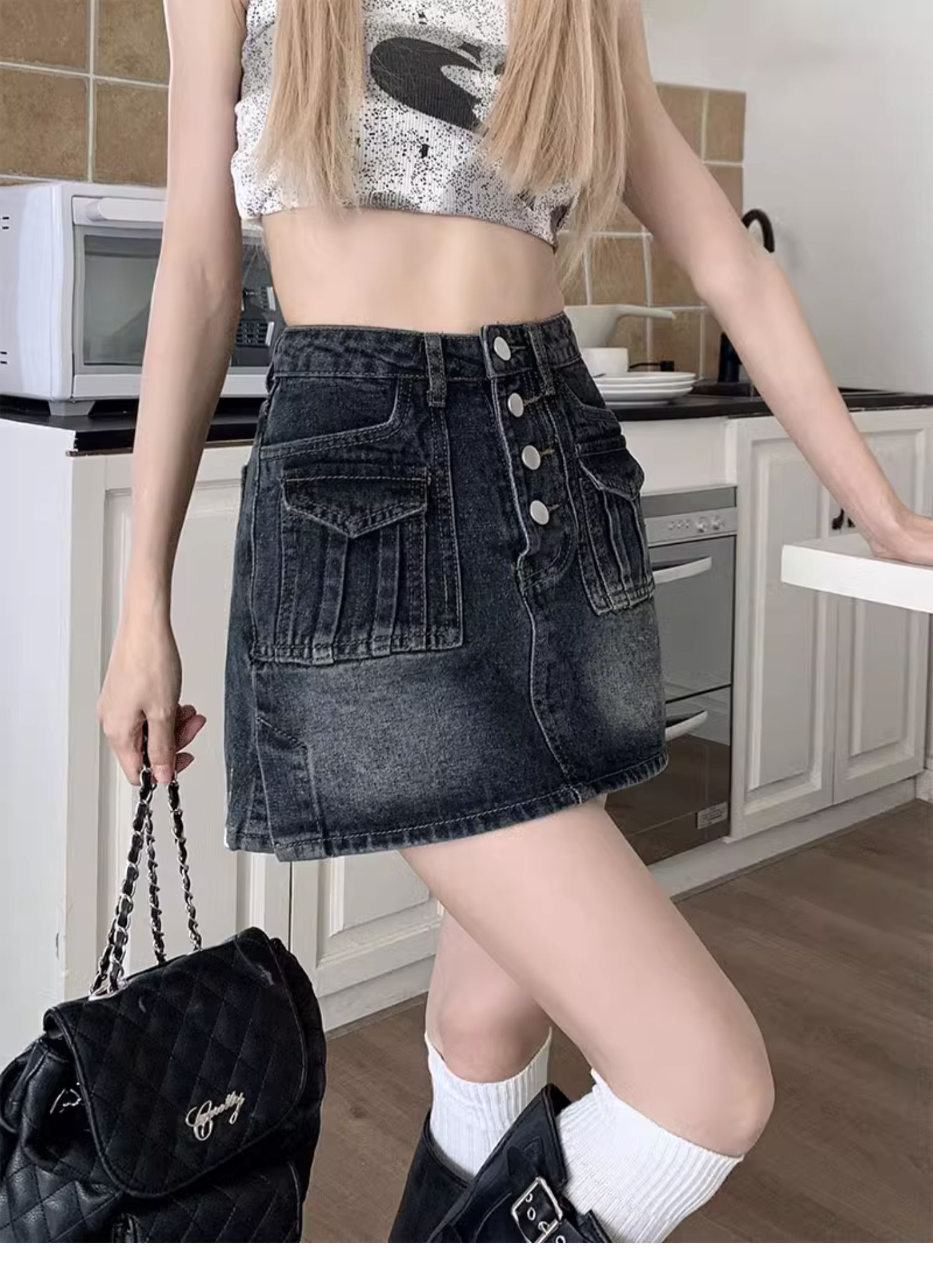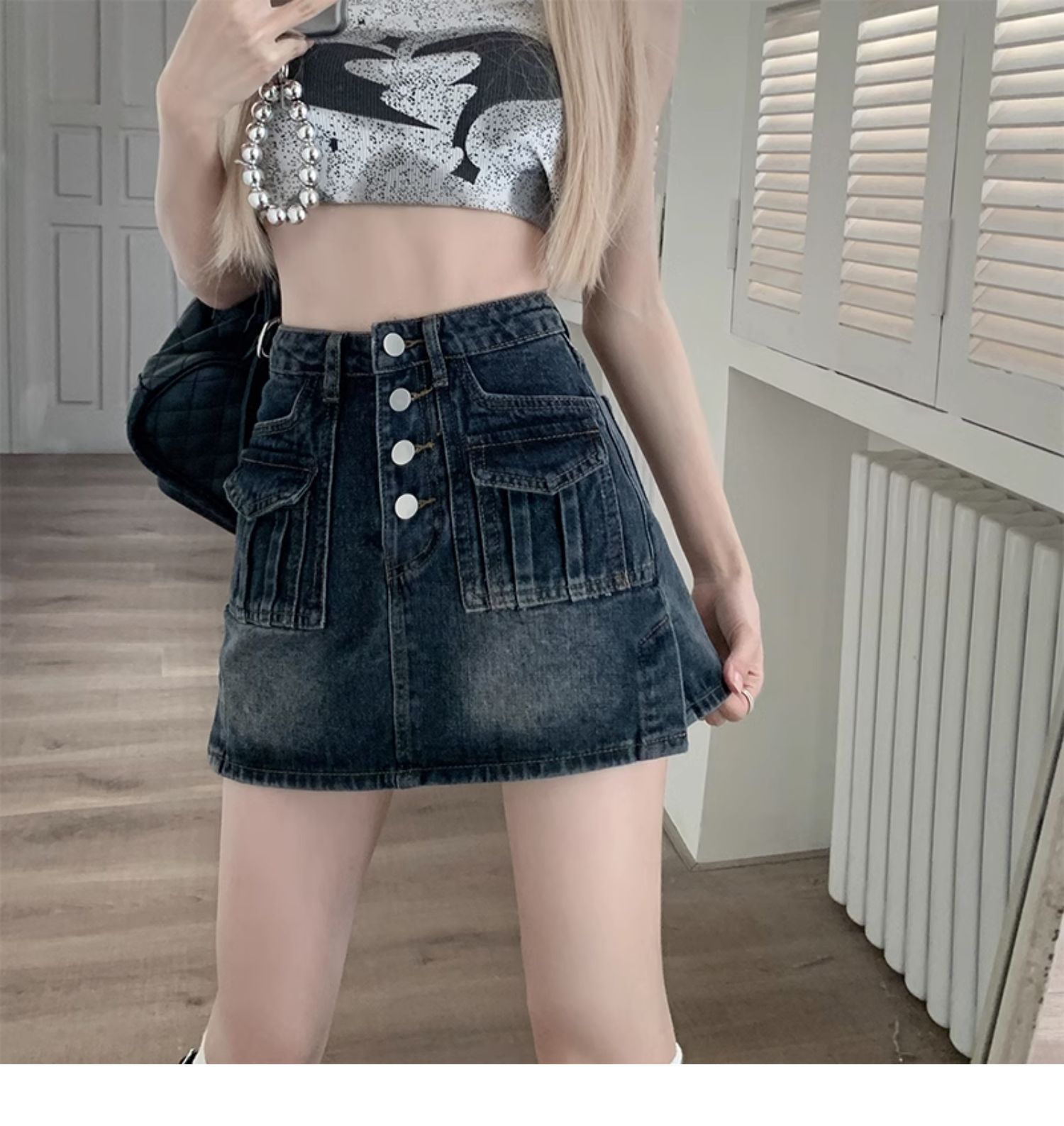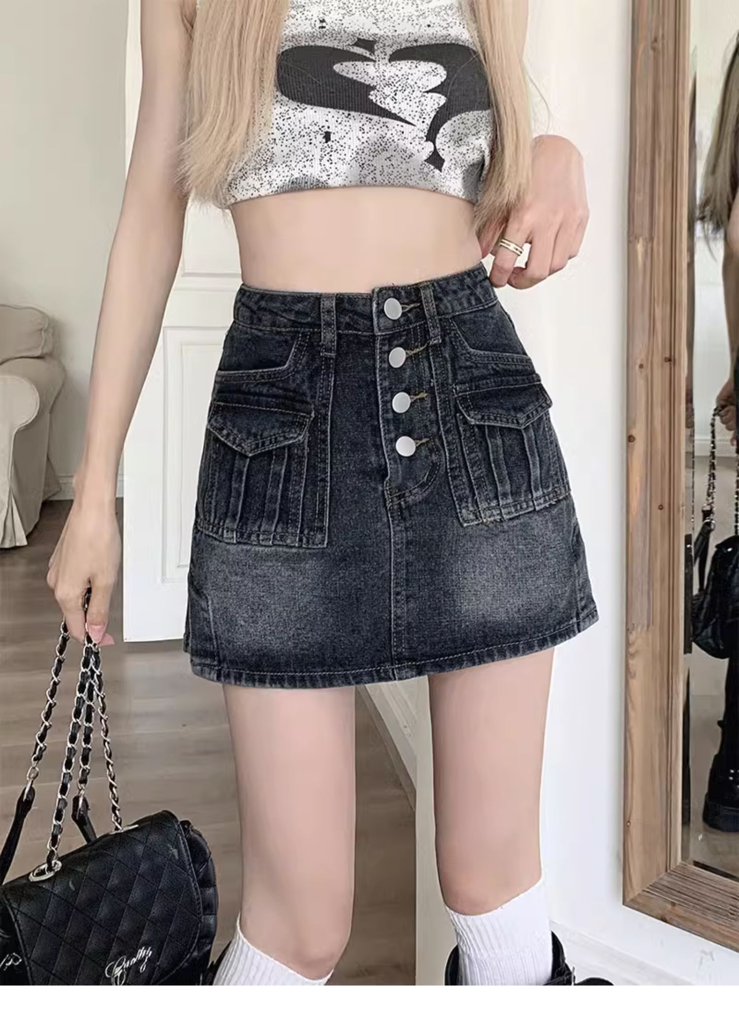 플러스 사이즈 여름 디자인 감각 하이 웨이스트 스플릿 데님 스커트 안티 러닝 라이트 슬리밍 작은 엉덩이 A 라인 스커트스토어 가기