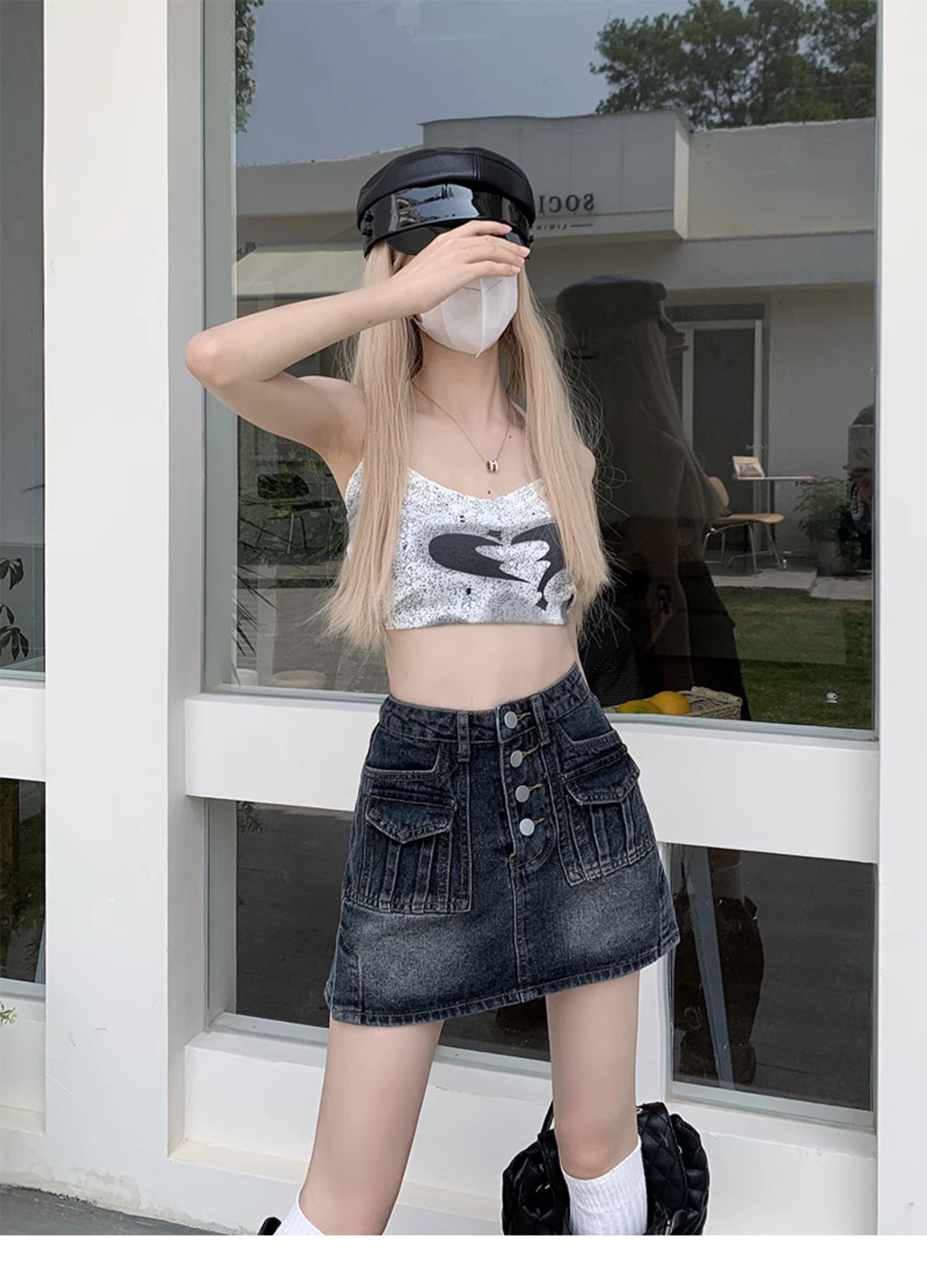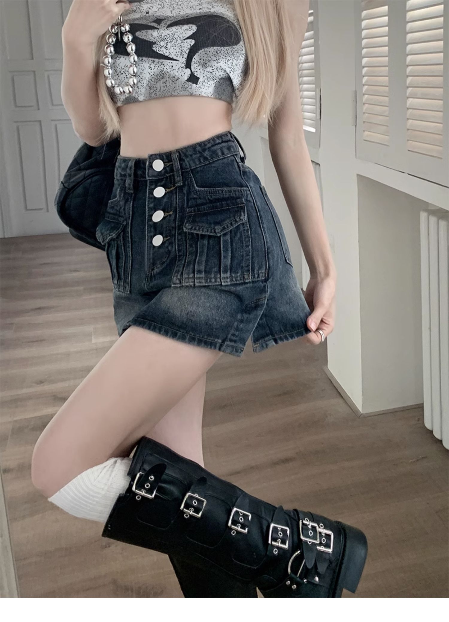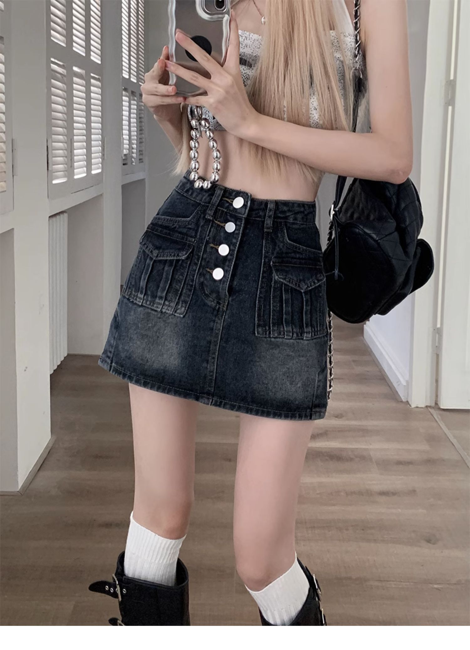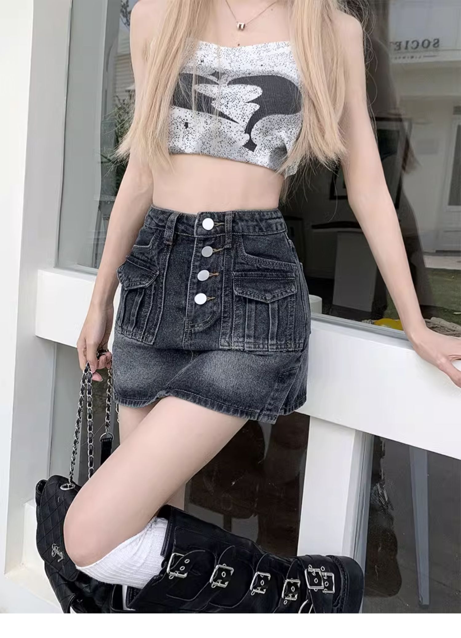 플러스 사이즈 여름 디자인 감각 하이 웨이스트 스플릿 데님 스커트 안티 러닝 라이트 슬리밍 작은 엉덩이 A 라인 스커트스토어 가기