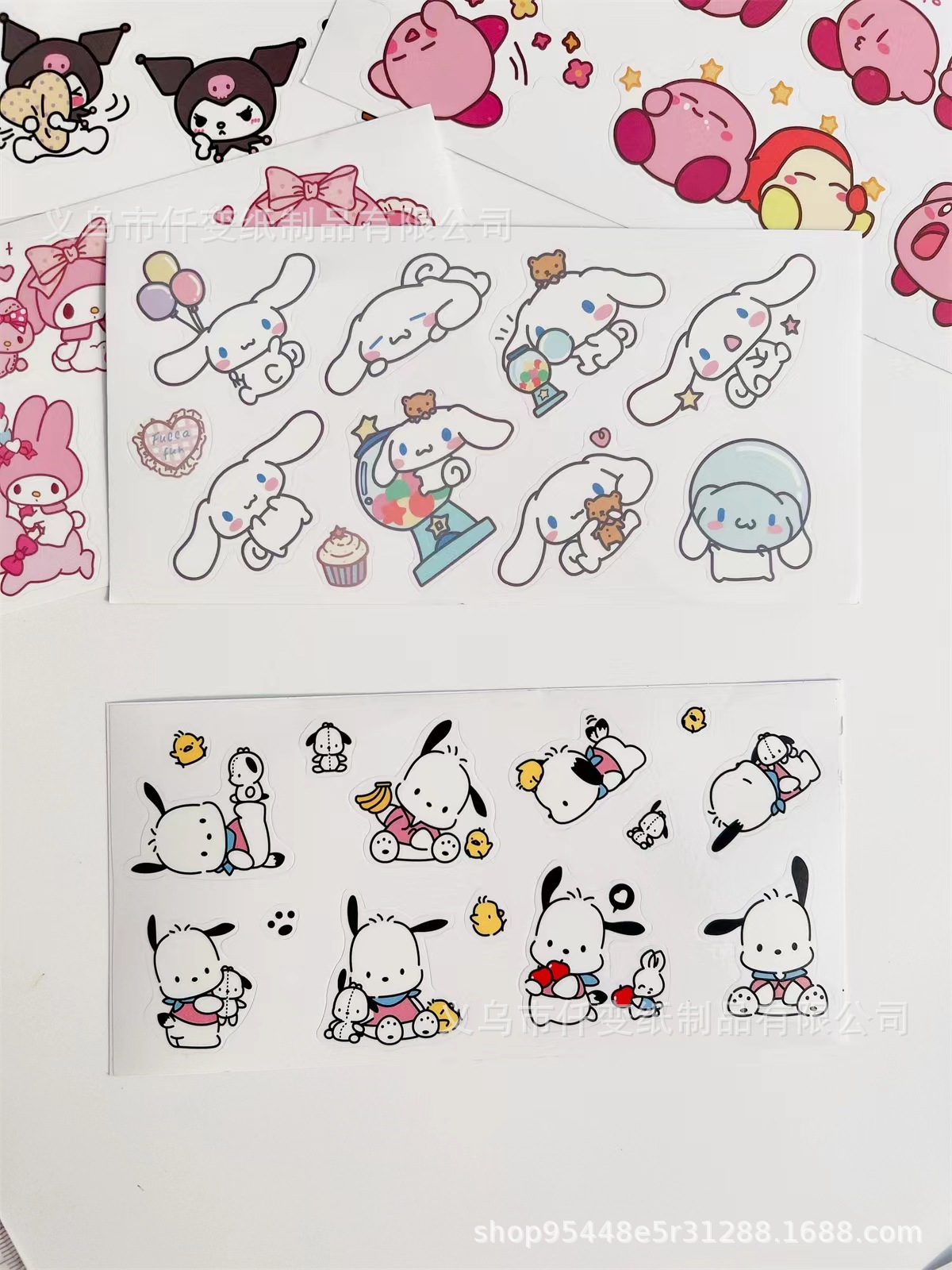 공장 재고 Sanlio 만화 손 계정 스티커 양피지 개 투명 PVC 물 컵 방수 장식 스티커 도매스토어 가기