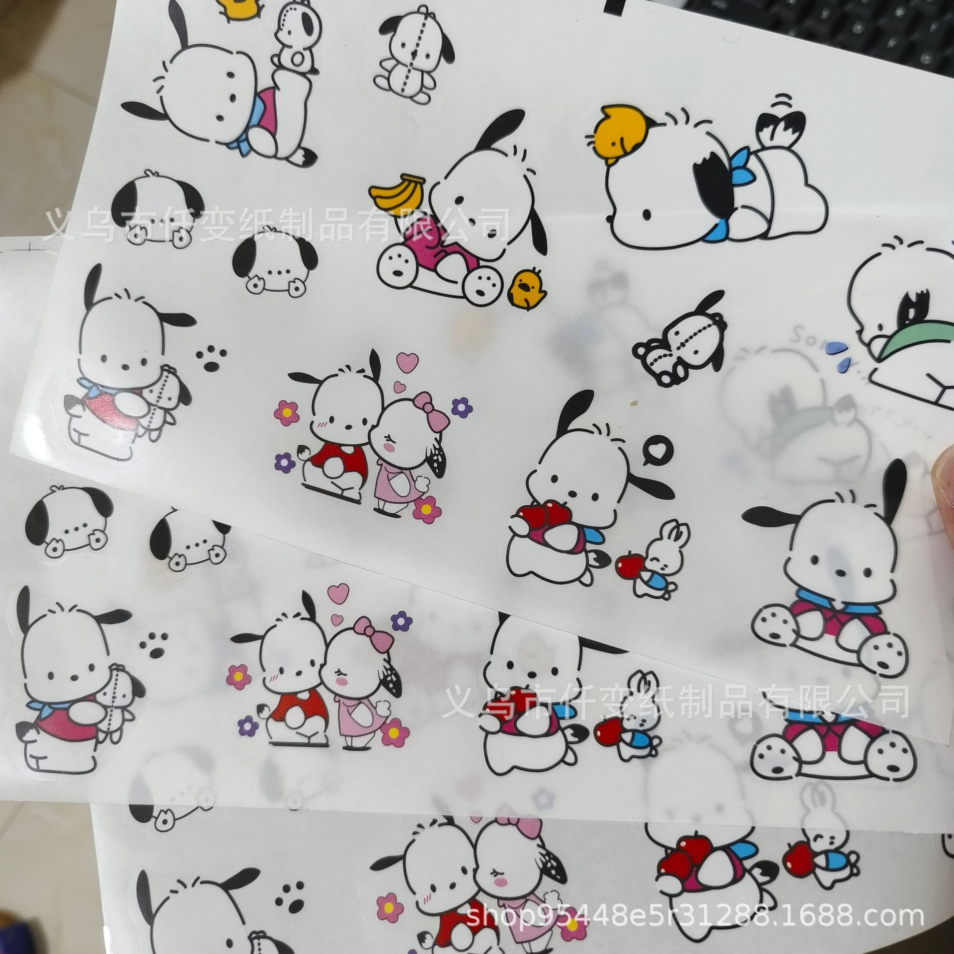 공장 재고 Sanlio 만화 손 계정 스티커 양피지 개 투명 PVC 물 컵 방수 장식 스티커 도매