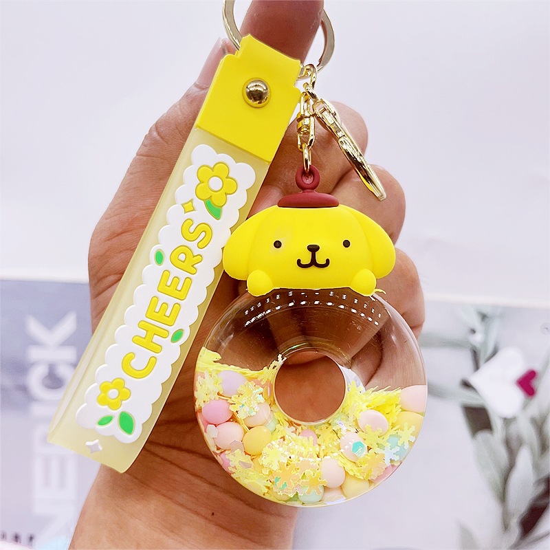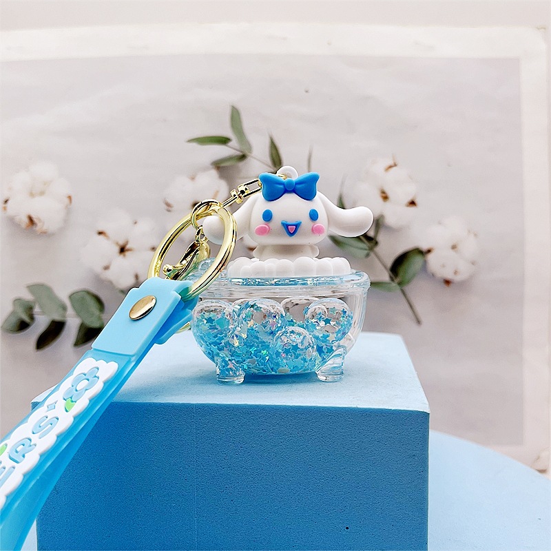 유구이 개 인형 Fusset 키 체인 귀여운 만화 산리오 작은 펜던트 오일에 파란색 큰 귀 개스토어 가기