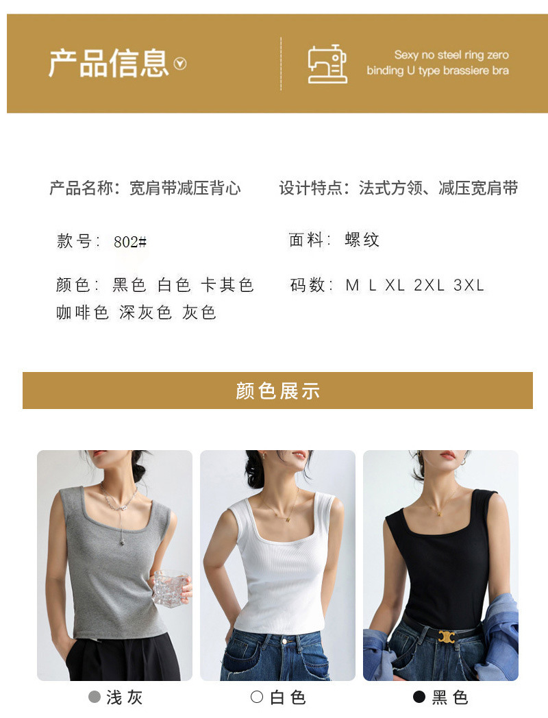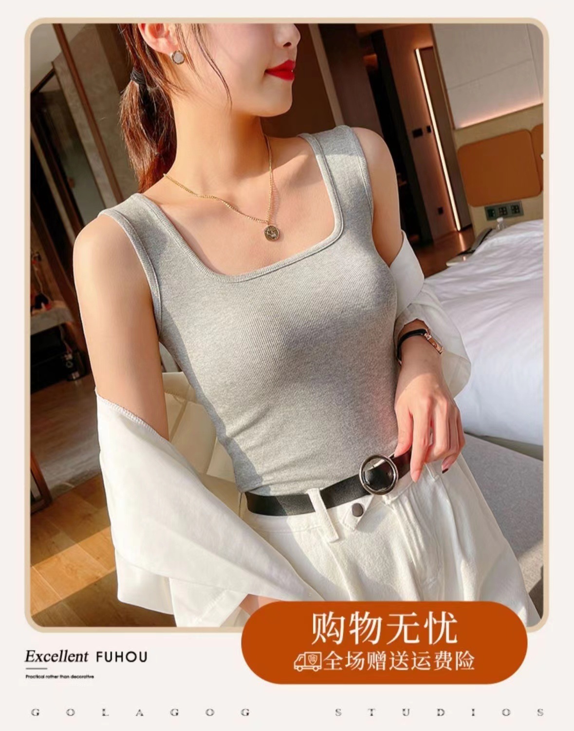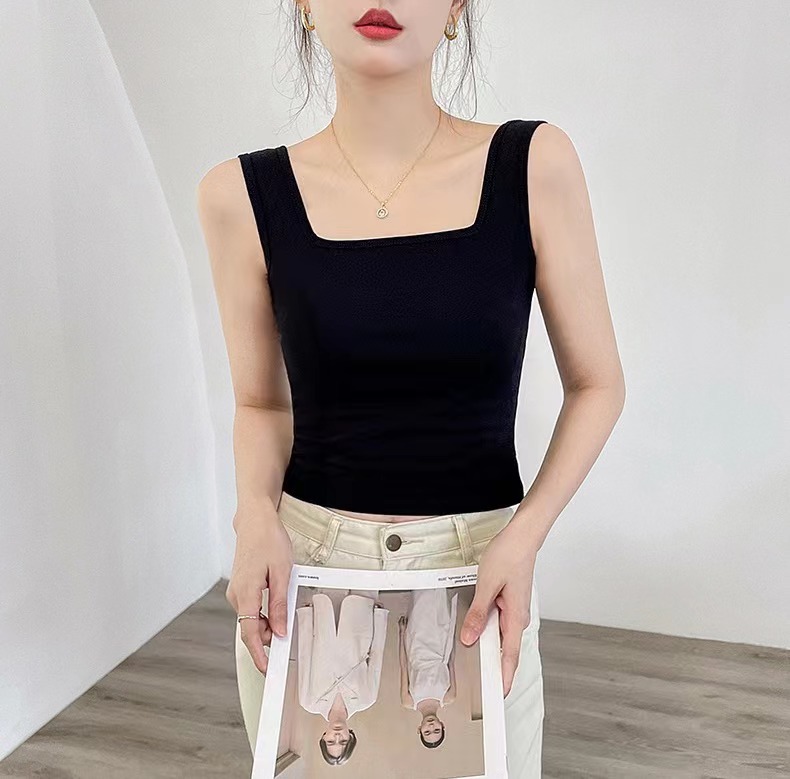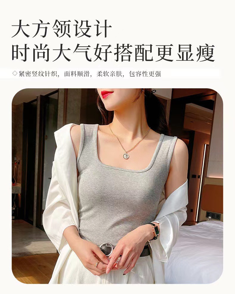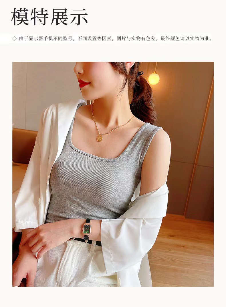 와이드 숄더 스트랩 민소매 짧은 작은 조끼 여성용 여름 새로운 스퀘어 칼라 안티 워킹 라이트-프루프 바디 커버링 유방 커버 내부 베이스 탑스토어 가기