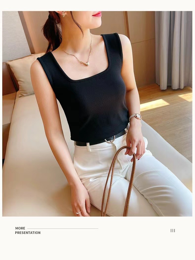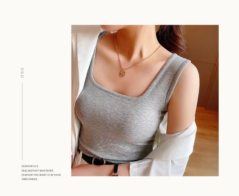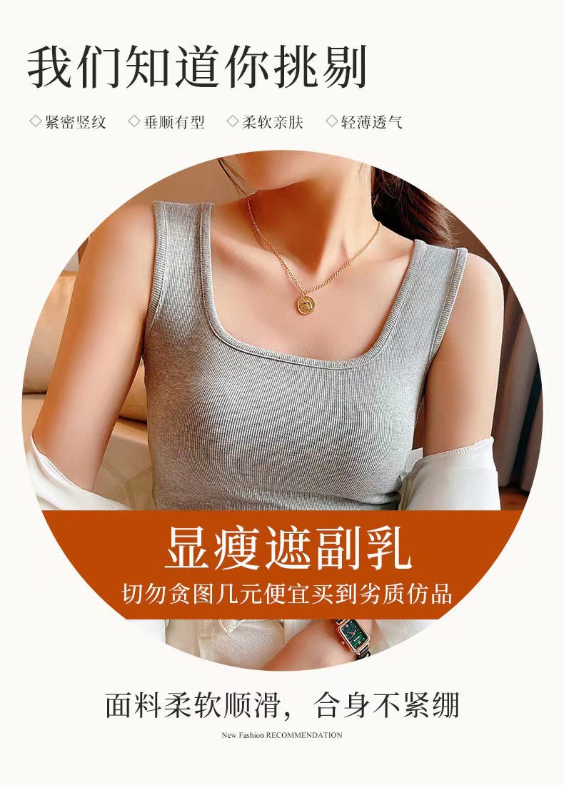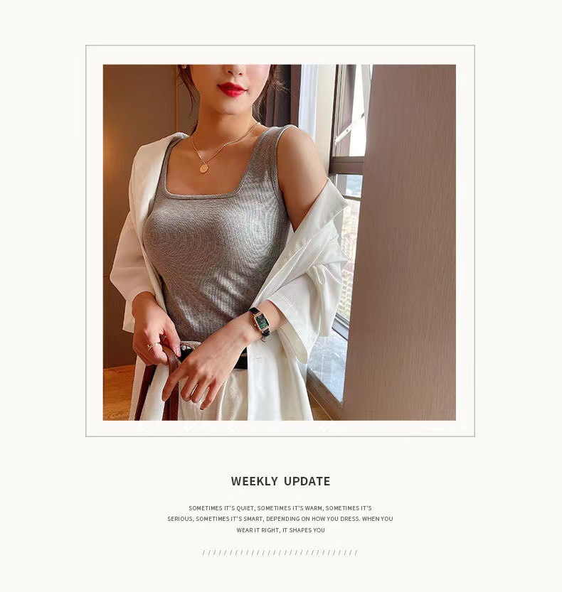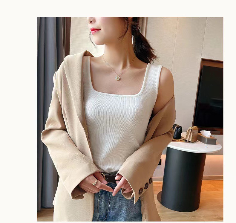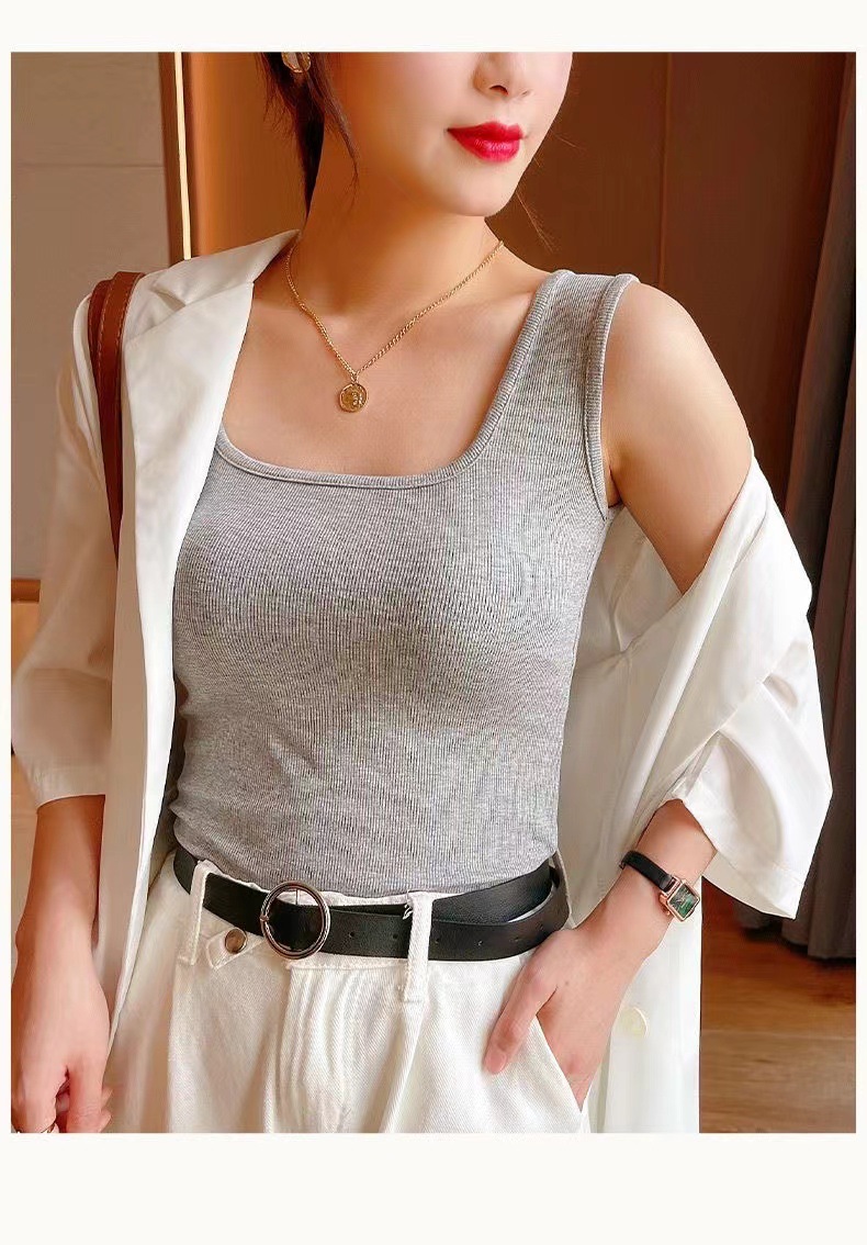와이드 숄더 스트랩 민소매 짧은 작은 조끼 여성용 여름 새로운 스퀘어 칼라 안티 워킹 라이트-프루프 바디 커버링 유방 커버 내부 베이스 탑스토어 가기