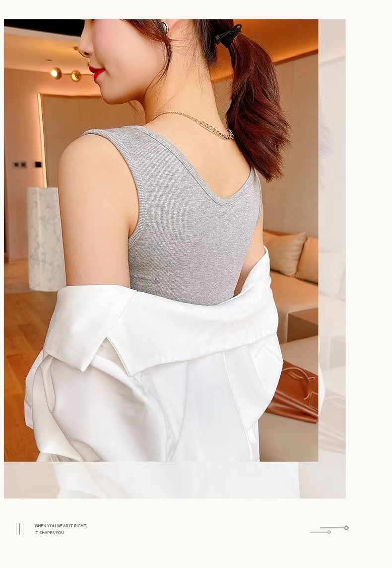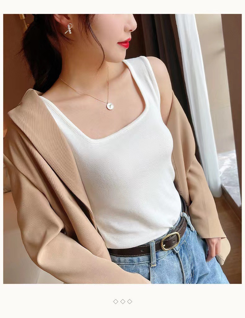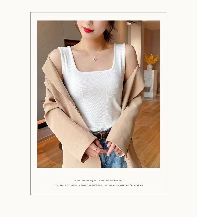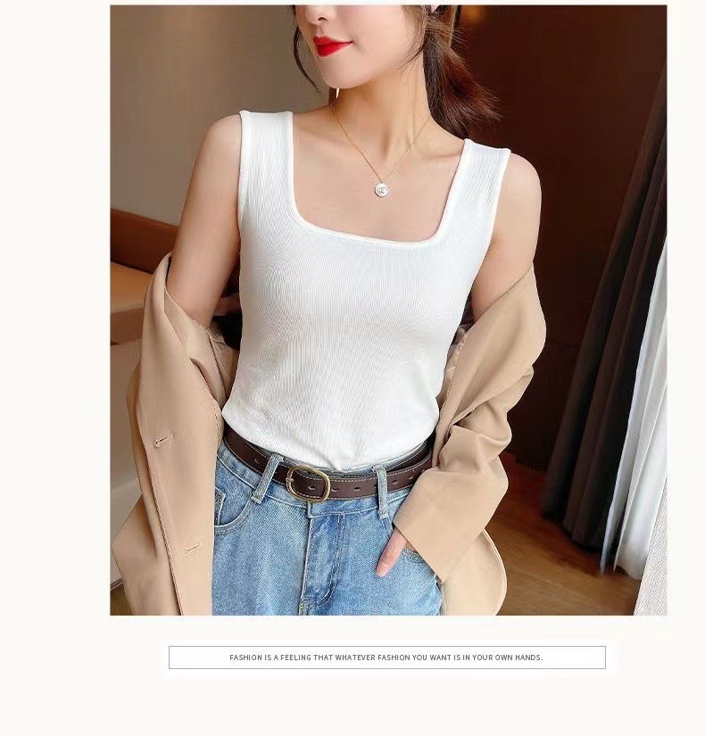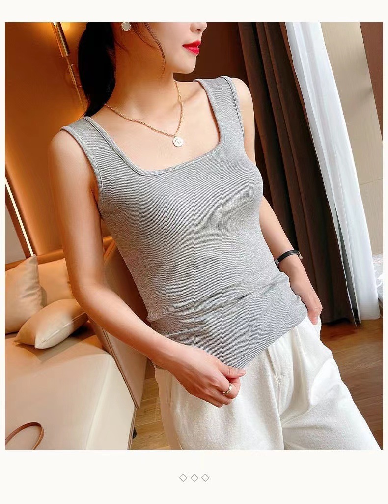 와이드 숄더 스트랩 민소매 짧은 작은 조끼 여성용 여름 새로운 스퀘어 칼라 안티 워킹 라이트-프루프 바디 커버링 유방 커버 내부 베이스 탑스토어 가기