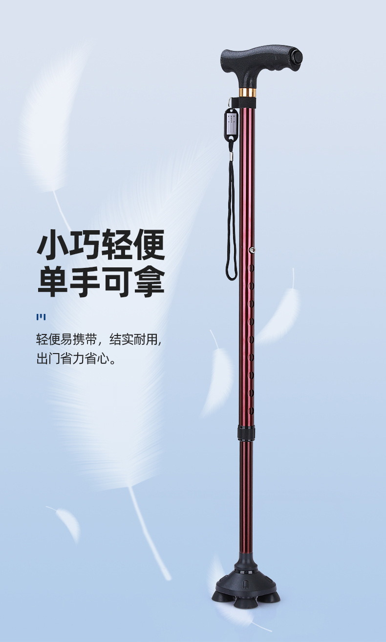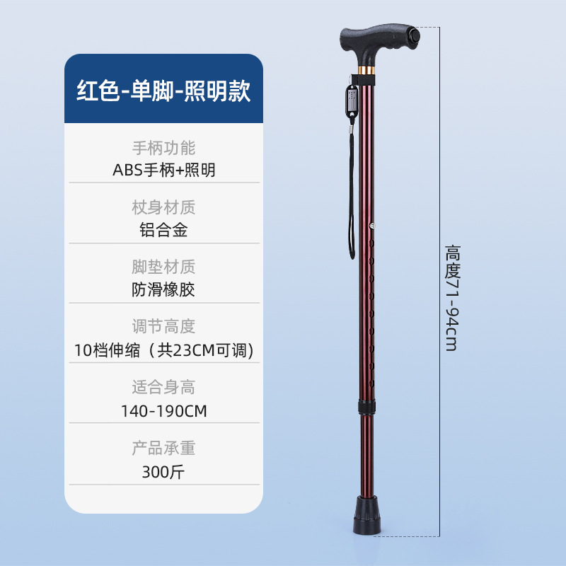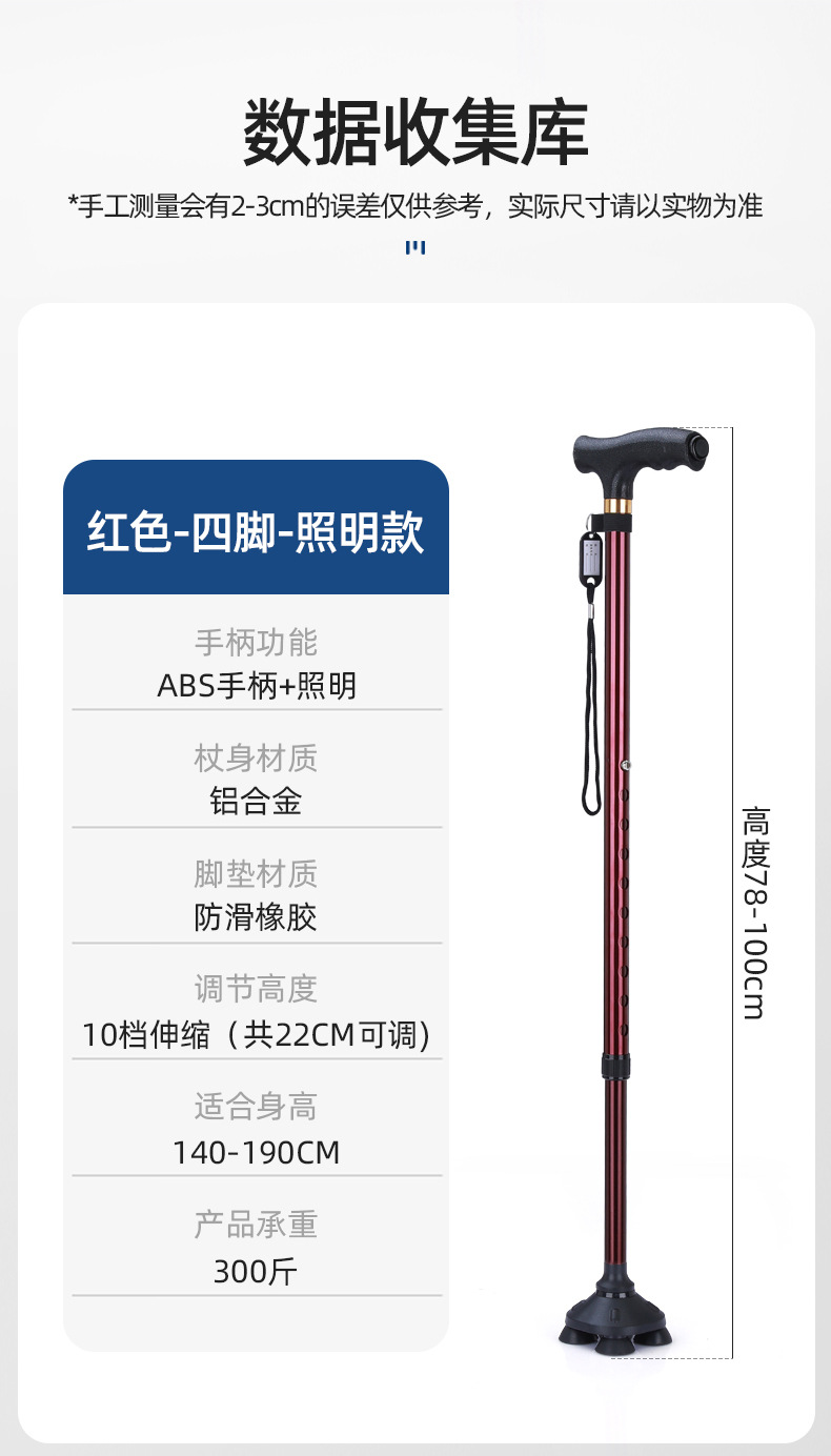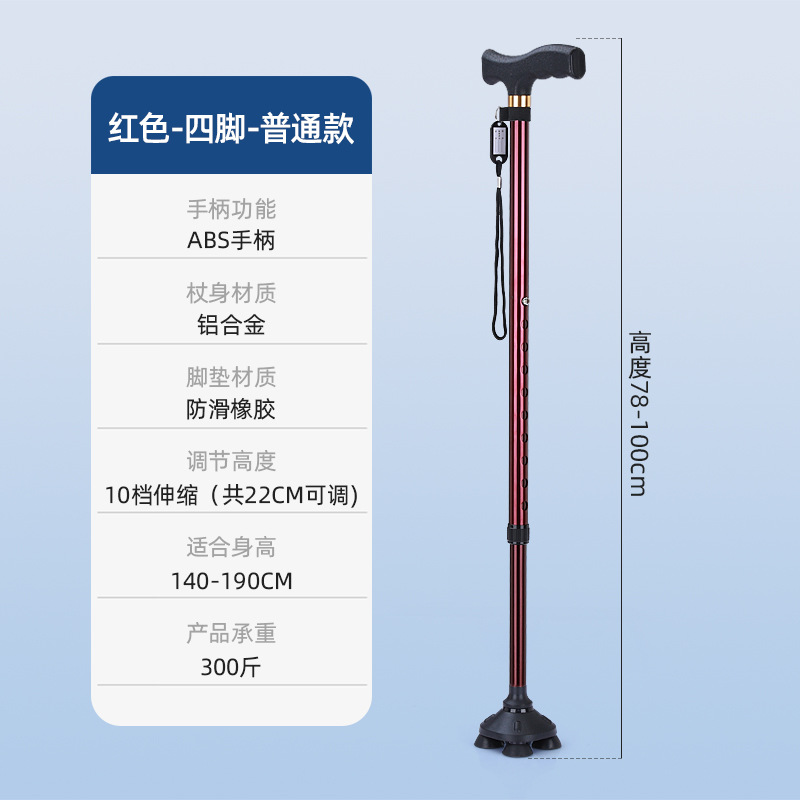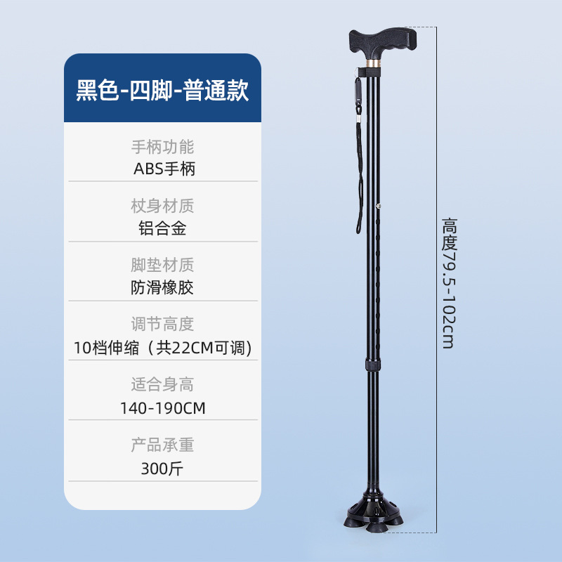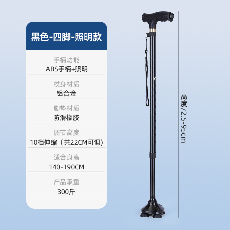 노인을 위한 조명이 있는 알루미늄 합금 4각식 텔레스코픽 지팡이, 보행 보조 4각 지팡이, 경량 미끄럼 방지 야외 등산 지팡이