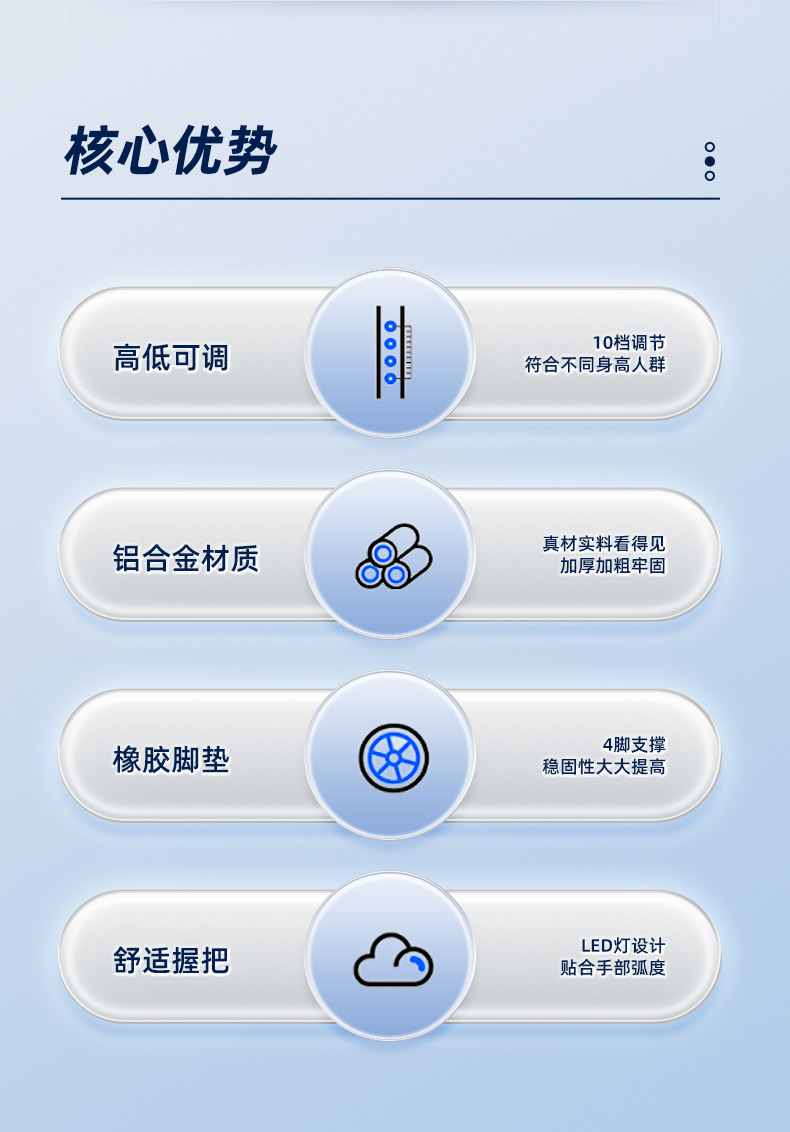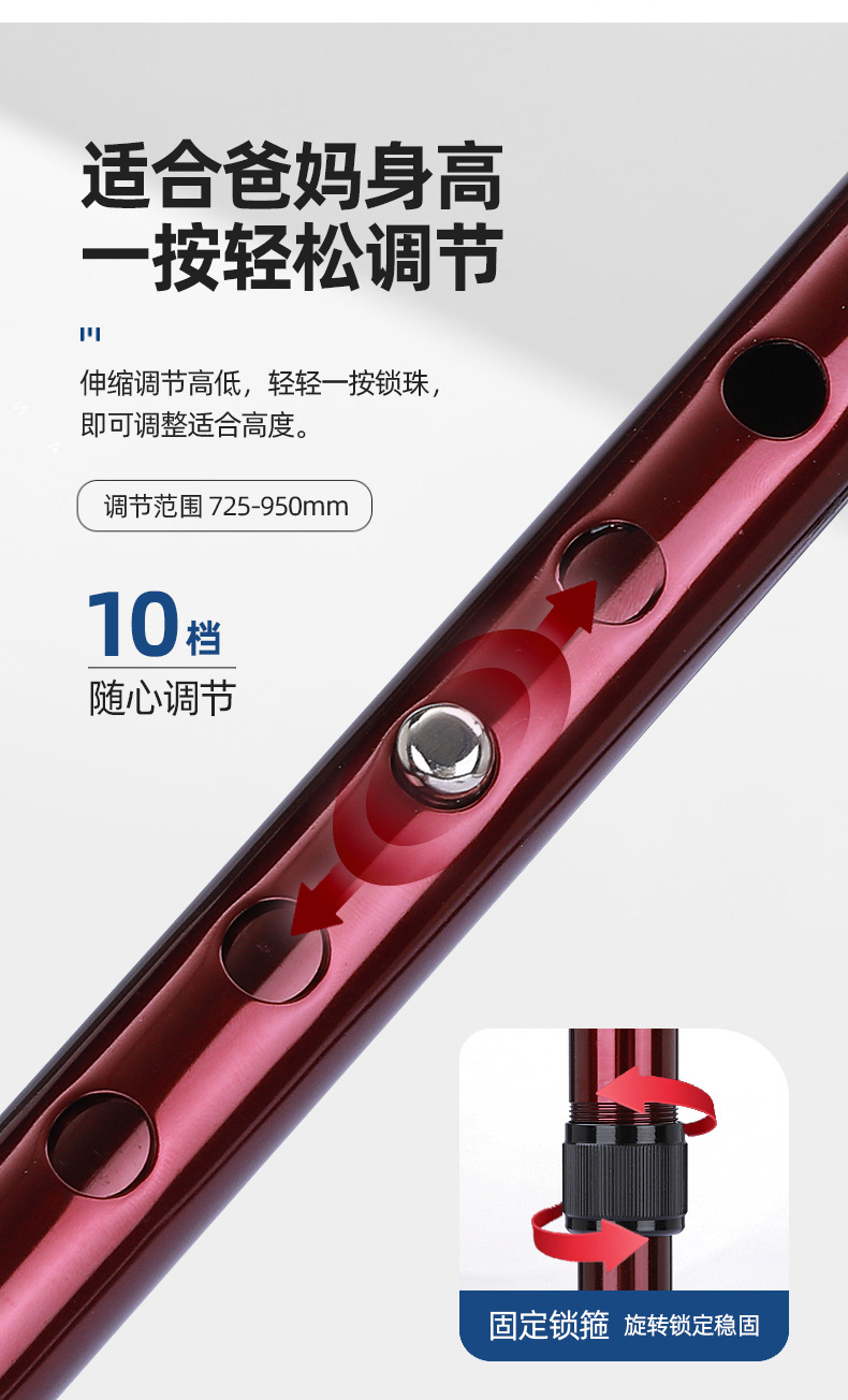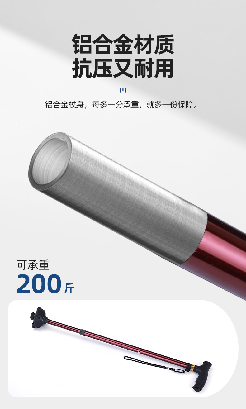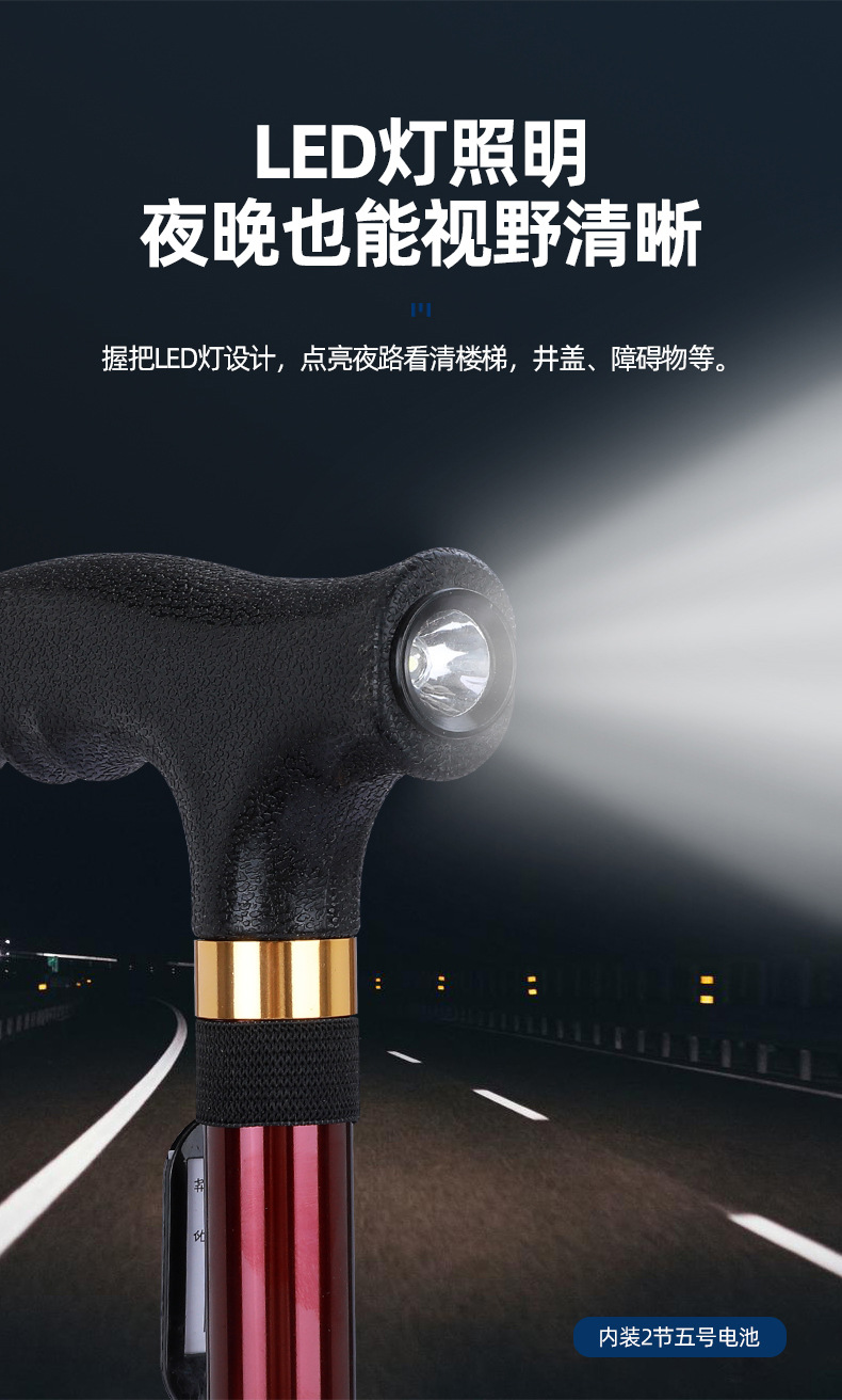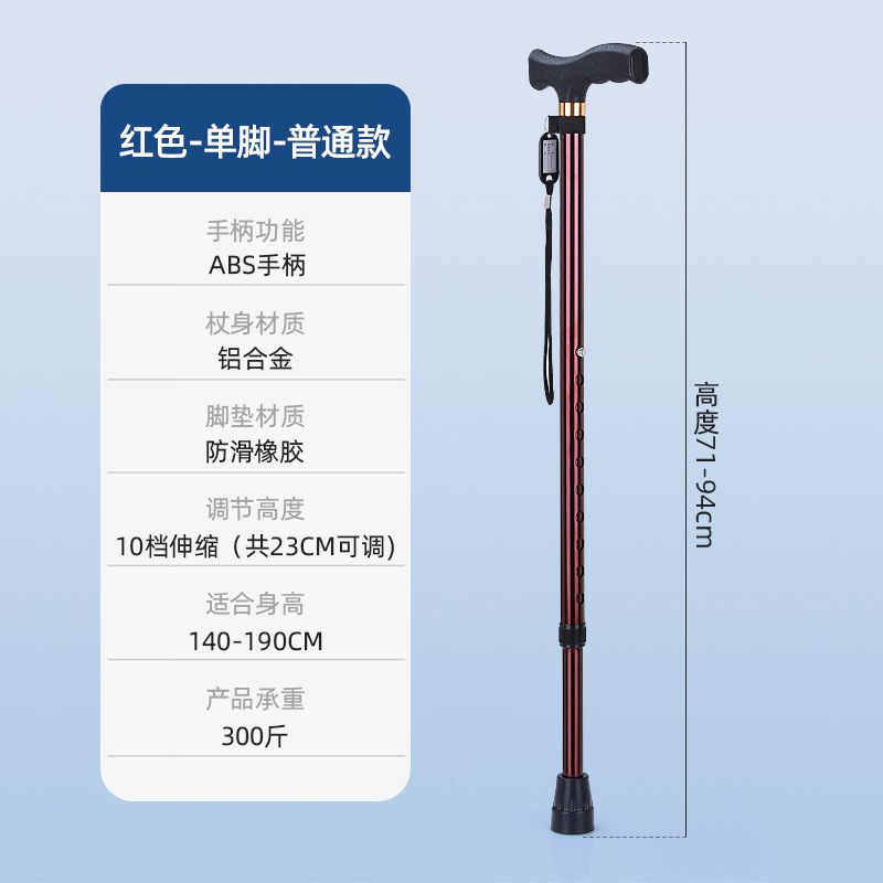 노인을 위한 조명이 있는 알루미늄 합금 4각식 텔레스코픽 지팡이, 보행 보조 4각 지팡이, 경량 미끄럼 방지 야외 등산 지팡이
