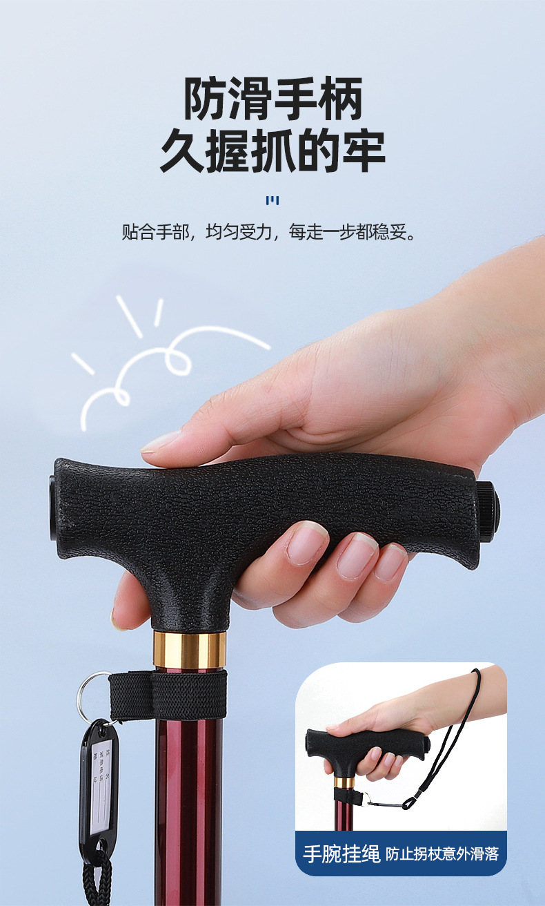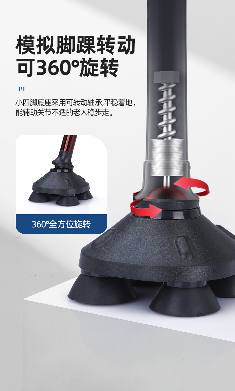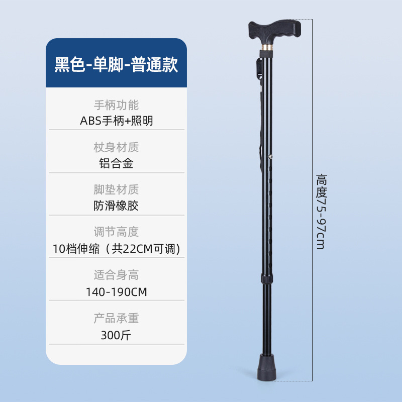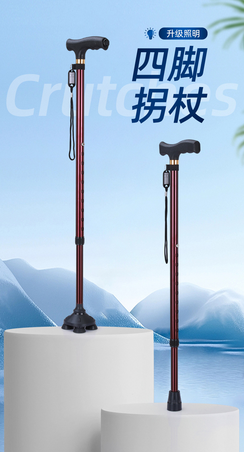 노인을 위한 조명이 있는 알루미늄 합금 4각식 텔레스코픽 지팡이, 보행 보조 4각 지팡이, 경량 미끄럼 방지 야외 등산 지팡이스토어 가기