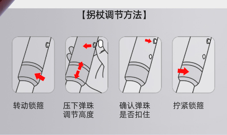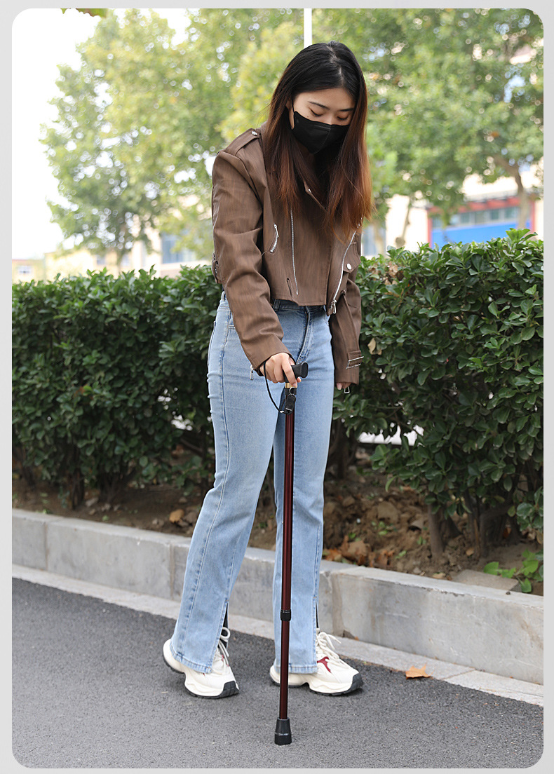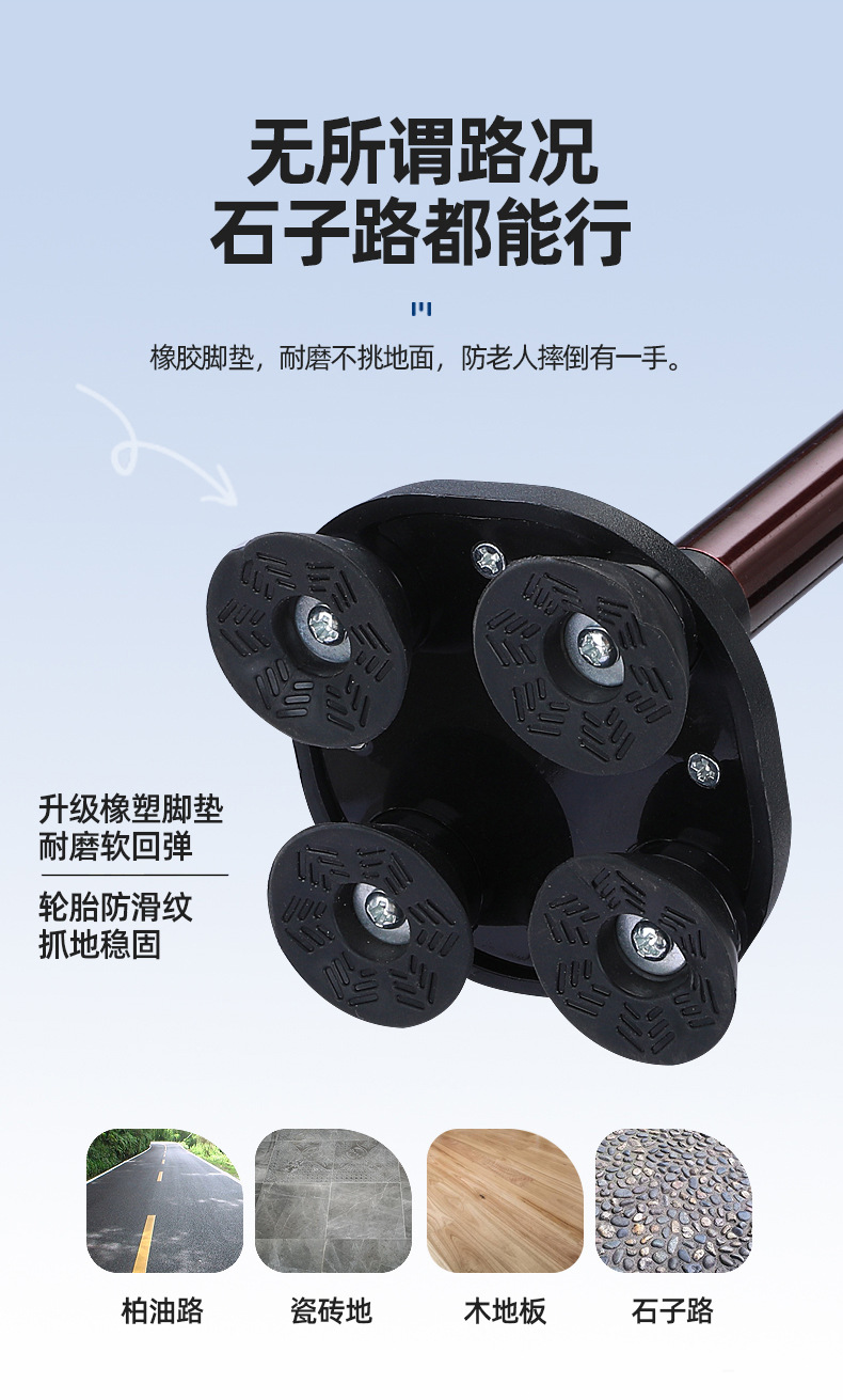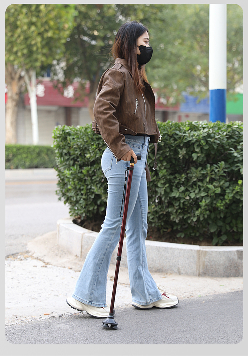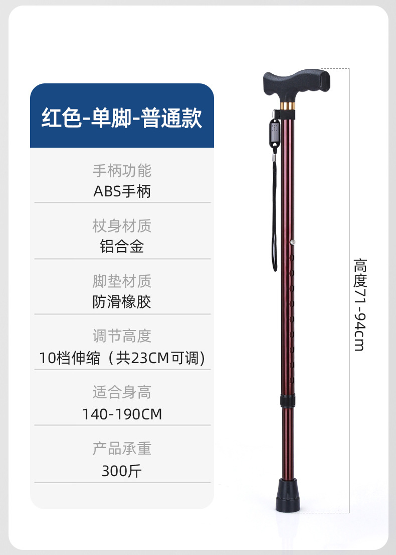노인을 위한 조명이 있는 알루미늄 합금 4각식 텔레스코픽 지팡이, 보행 보조 4각 지팡이, 경량 미끄럼 방지 야외 등산 지팡이스토어 가기