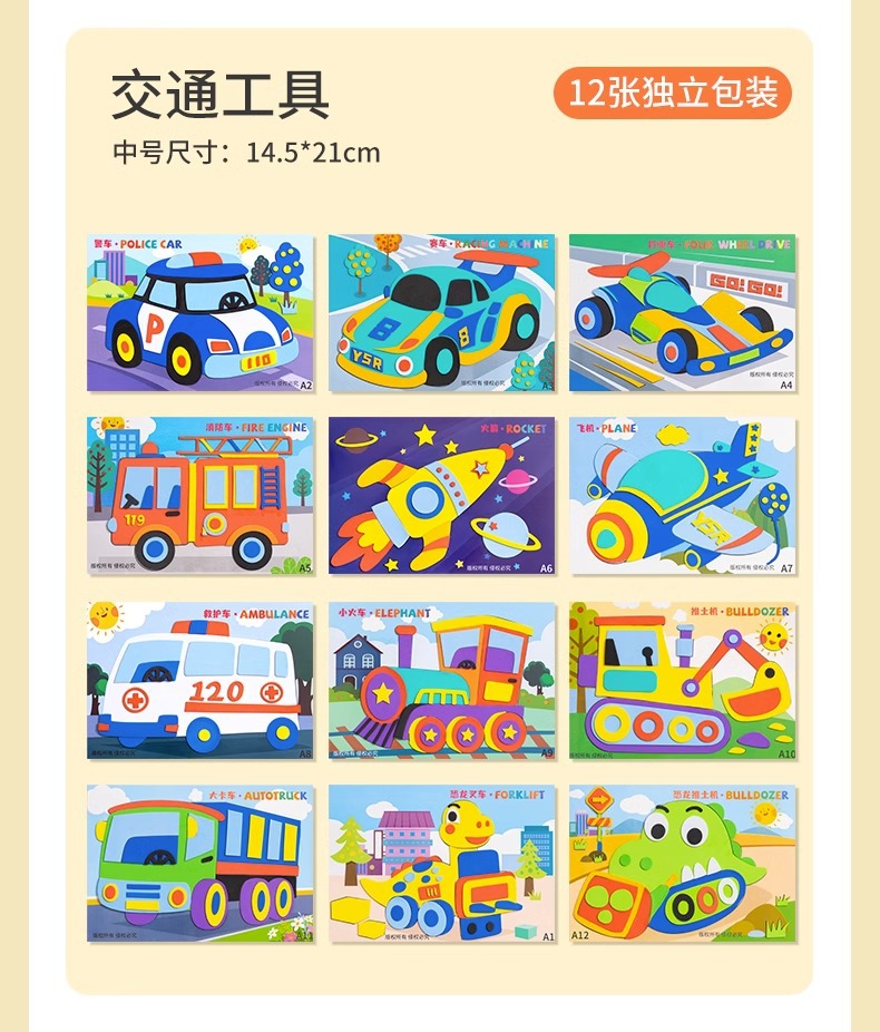 어린이 수제 diy3d EVA 스티커 유치원 소년과 소녀 교육 스티커 만들기 재료 가방 장난감스토어 가기