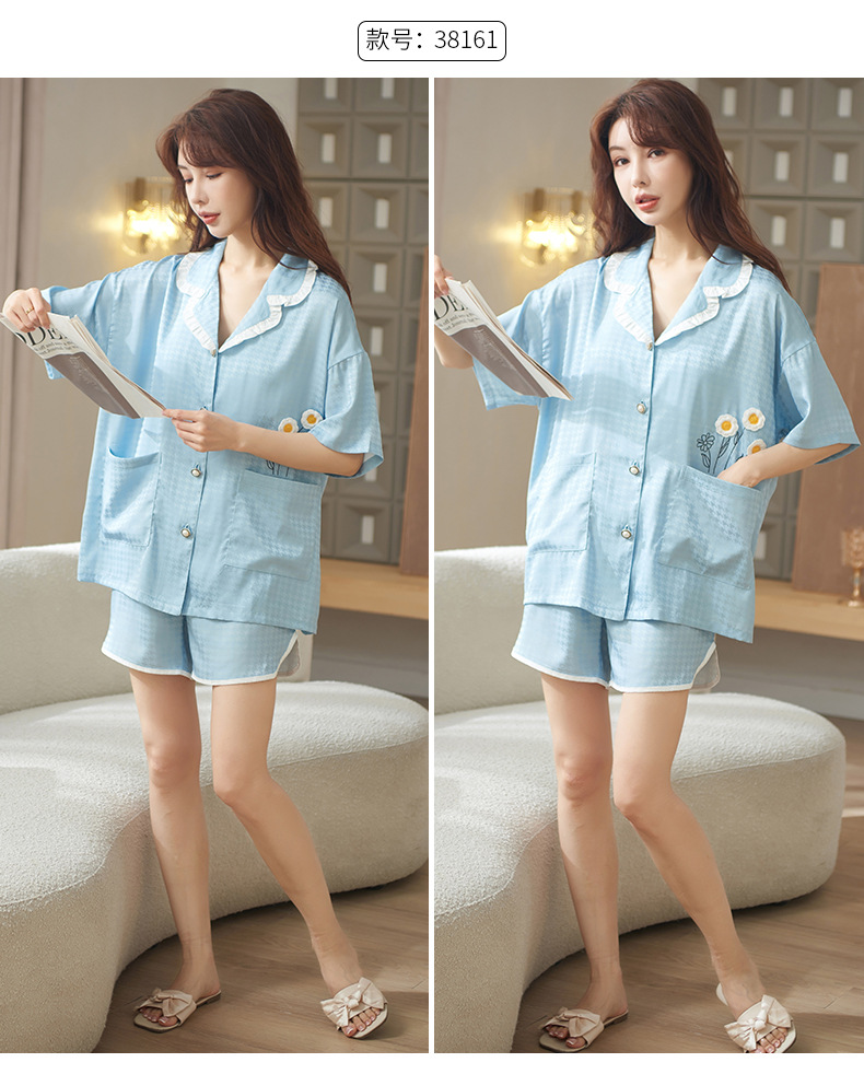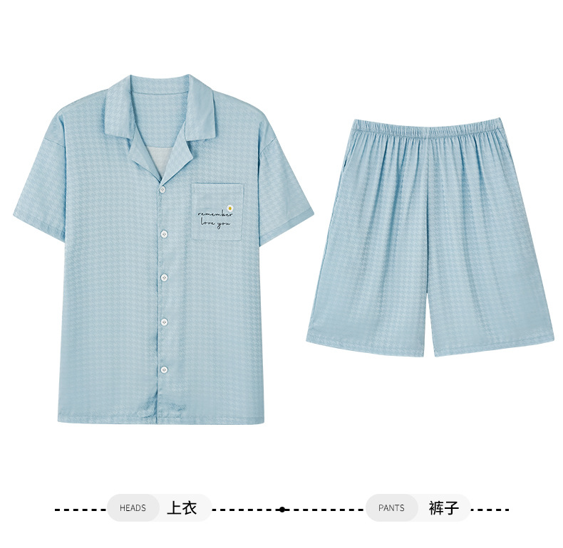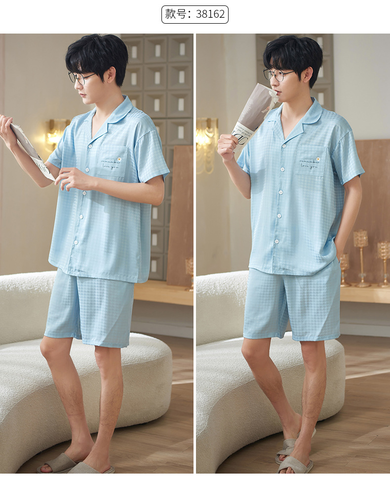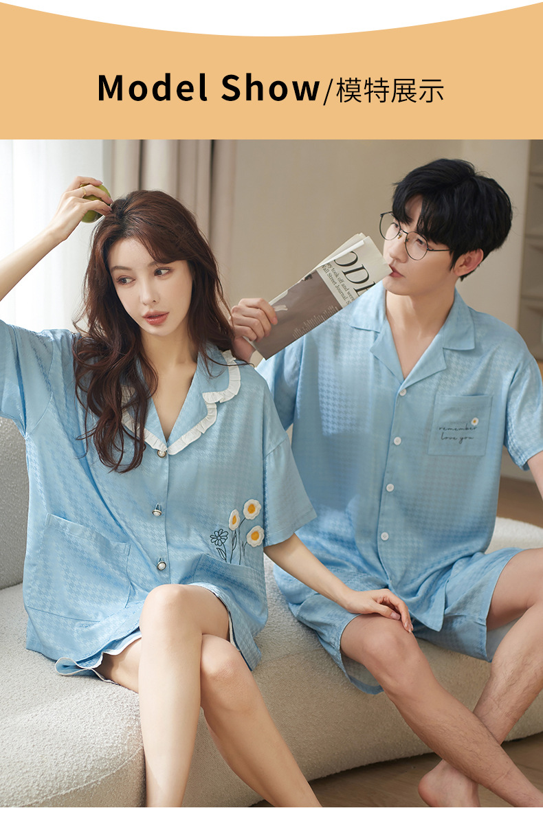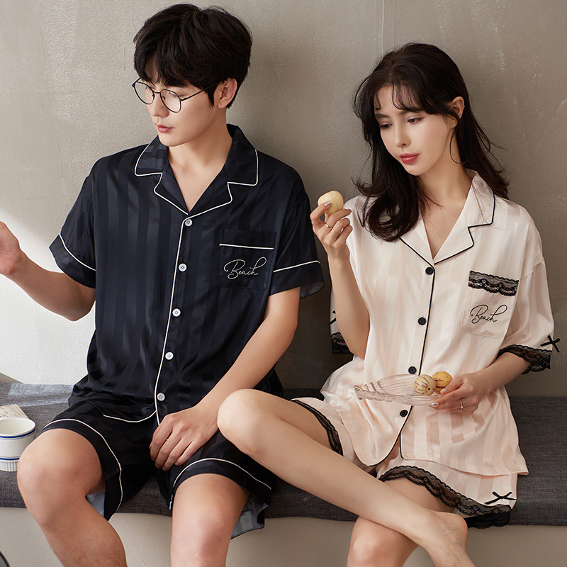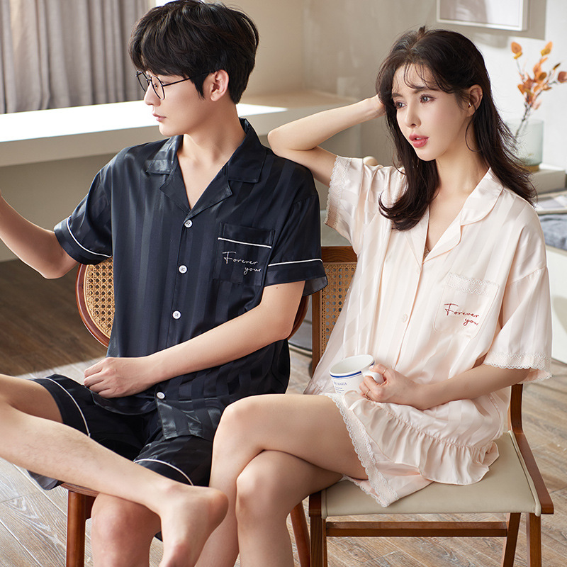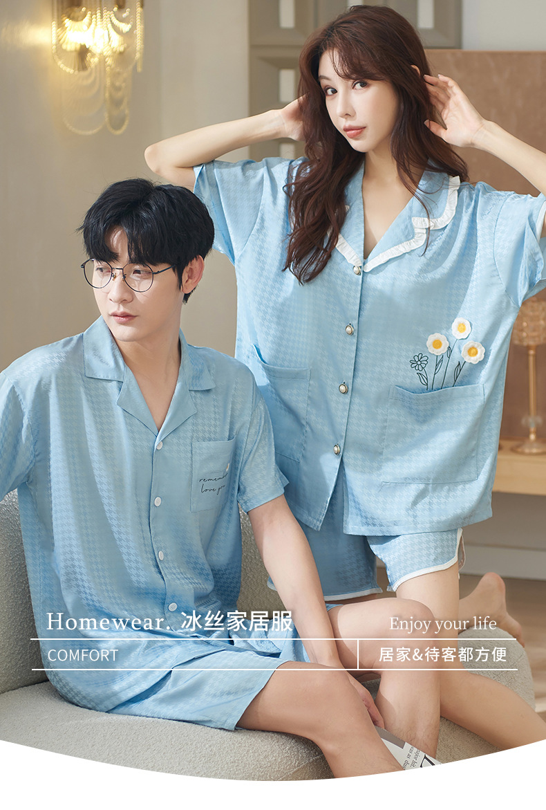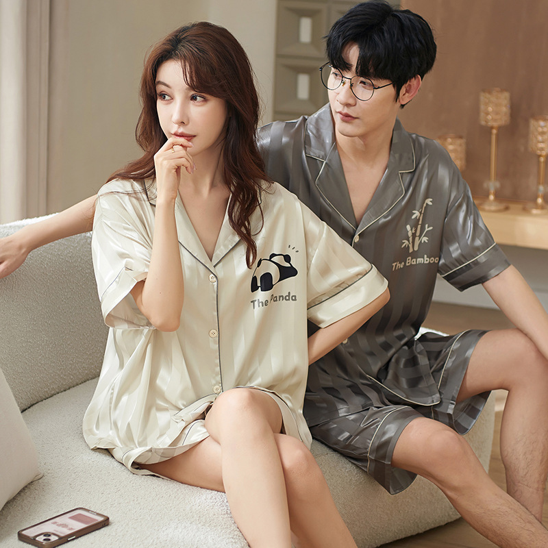 2024 여름 새 커플 아이스 실크 파자마 반팔 반바지 아이스 센스 홈 의류 남녀 카디건 세트스토어 가기