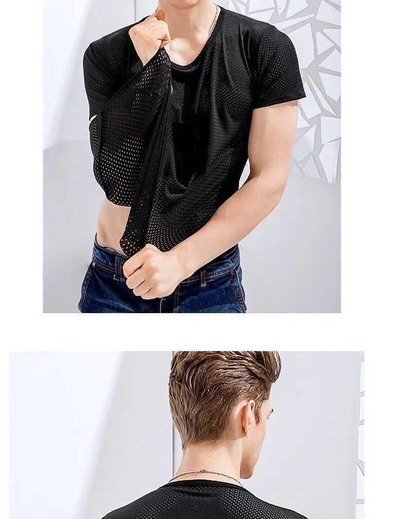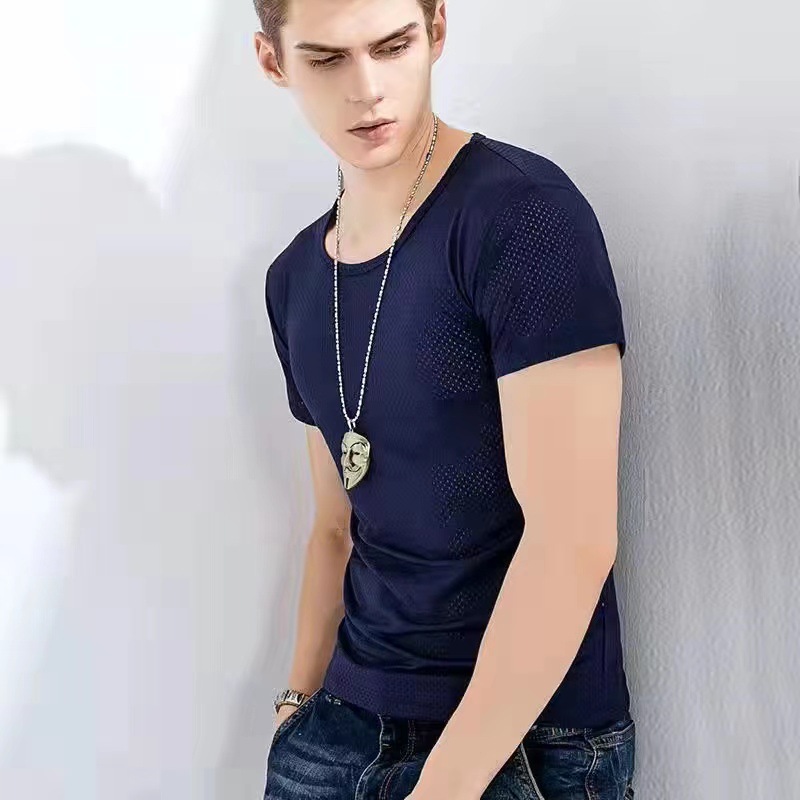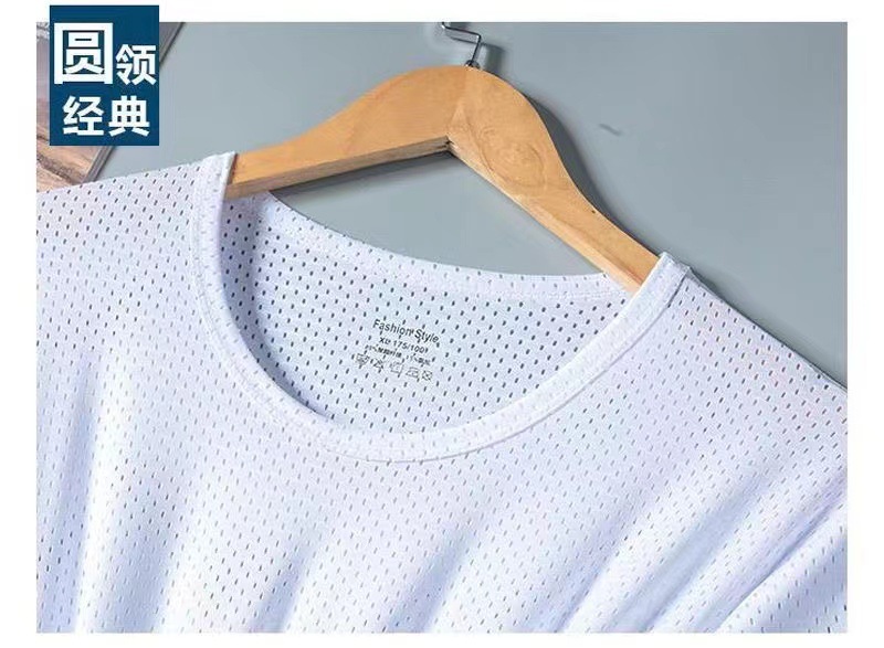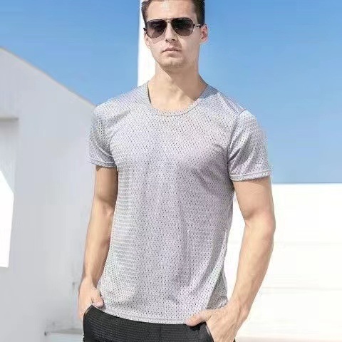 슬림핏 스포츠 캐주얼 여름 속건 티셔츠 남성용 아이스 실크 메쉬 얇은 신축성 반팔 스포츠 속건