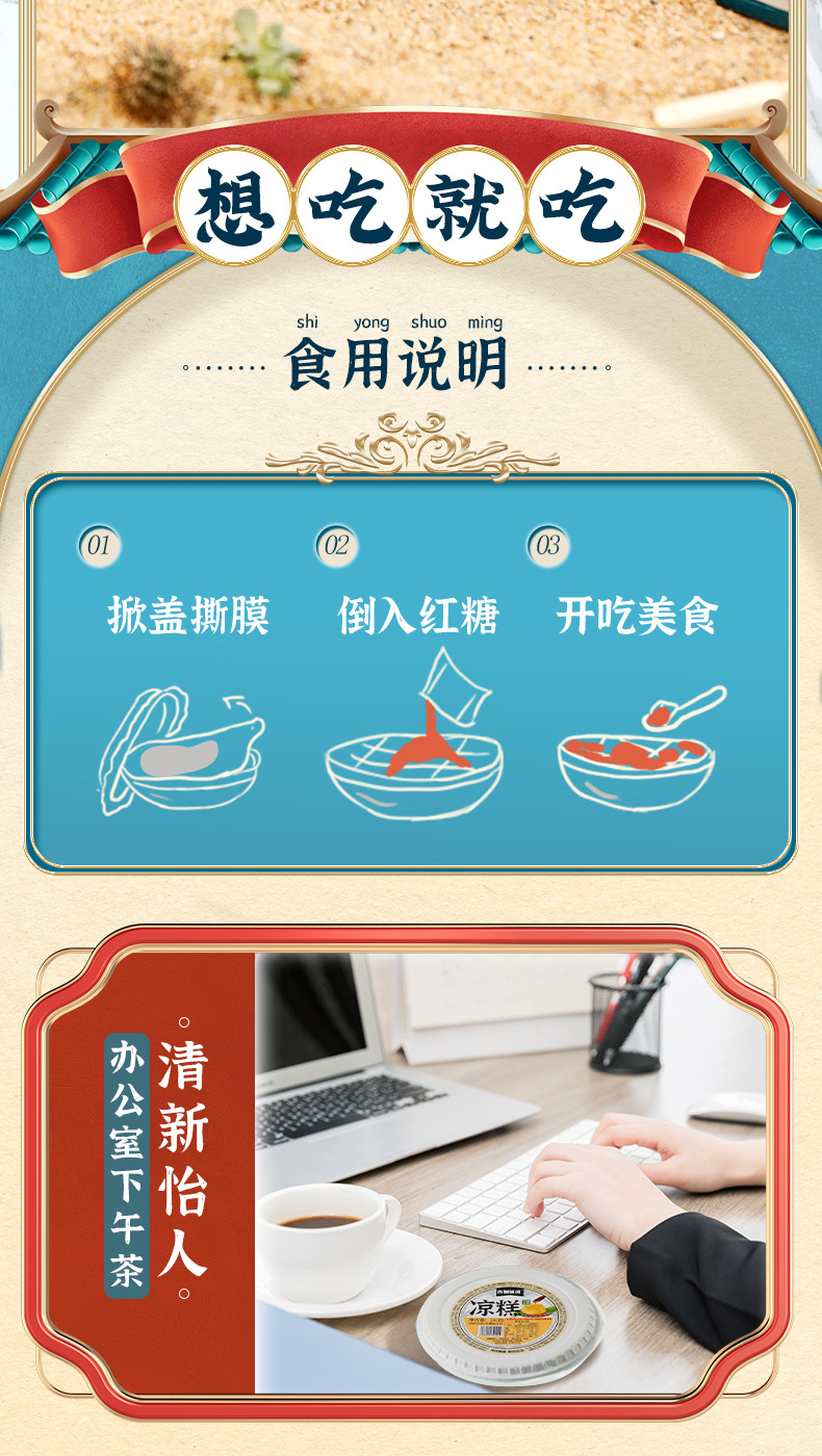 고대 슈 맛 인스턴트 콜드 케이크 아이스 파우더 특별 스낵 저지방 식사 대체 흑설탕 콜드 케이크 원피스