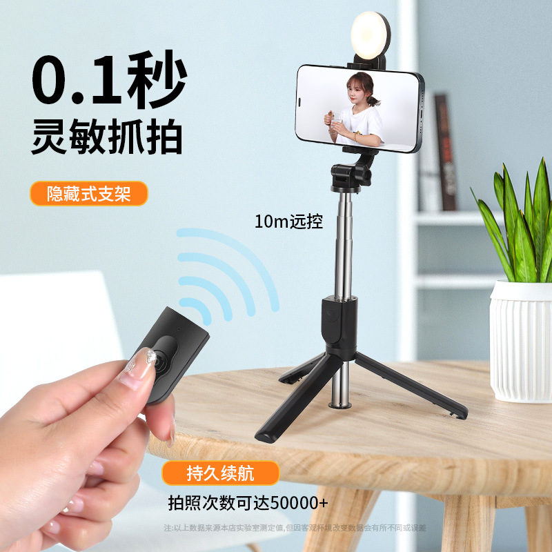 1m自拍杆三脚架带灯自拍神器适用华为小米苹果多功能蓝牙便携一体