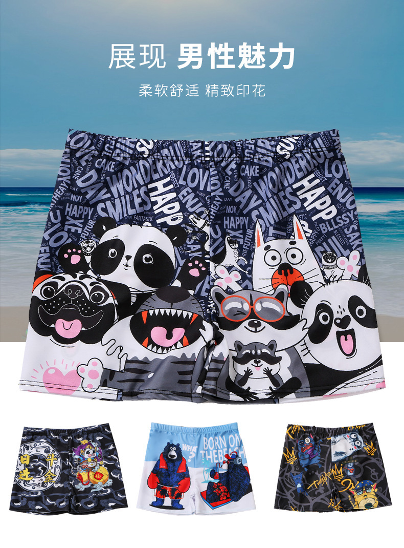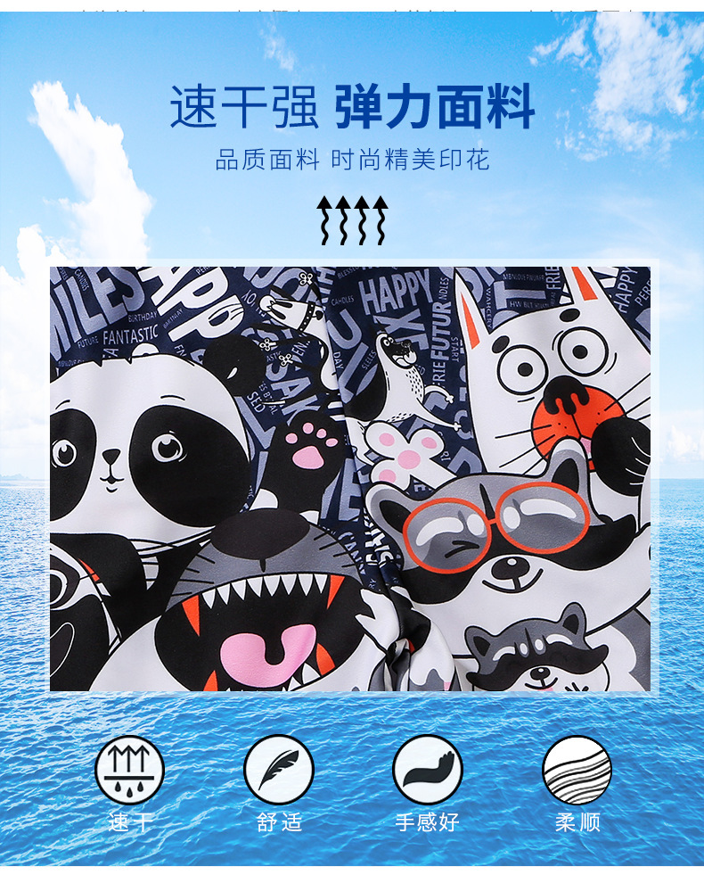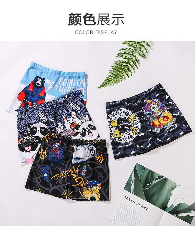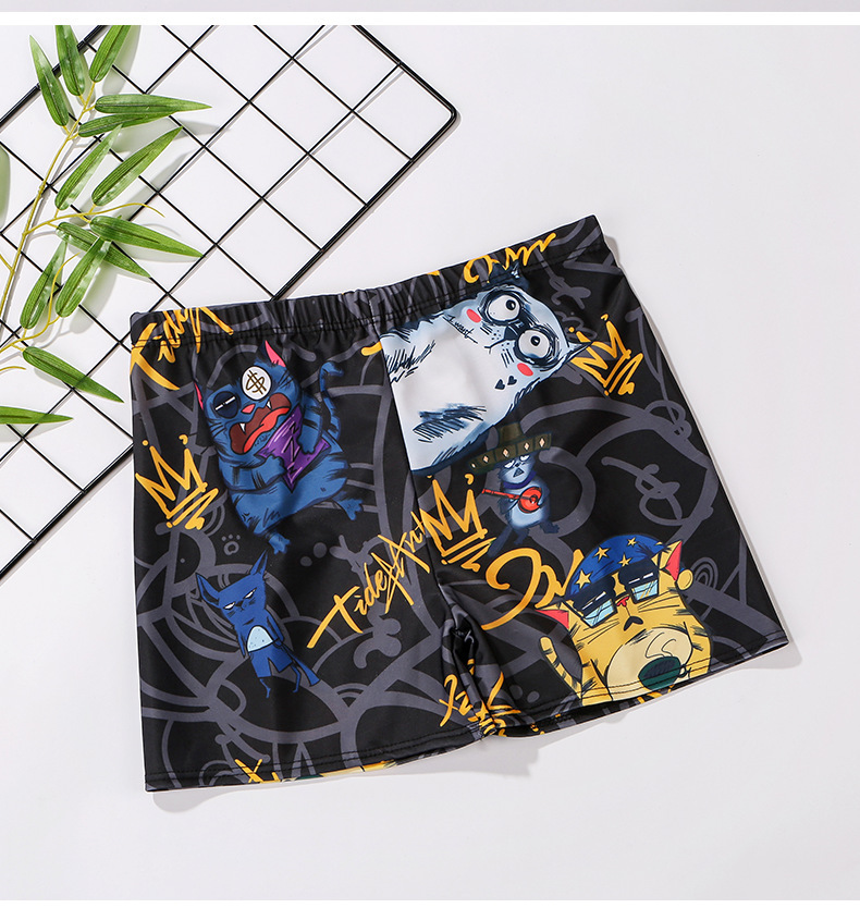 주니어 수영 트렁크 만화 중학교 큰 소년 당황 방지 패션 인쇄 빠른 건조 소프트 수영장 복서