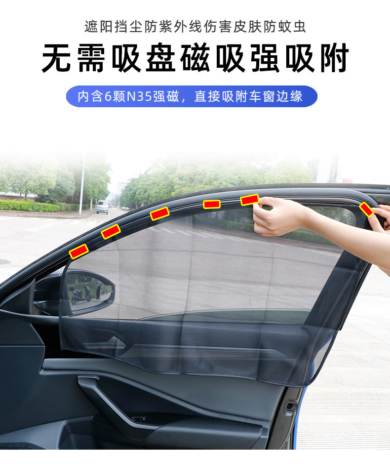 자동차 커튼 차양막 풀커버형 메쉬 차양막 측면창 및 후면창 단열 및 자외선 차단 전용 차량용 자석식 투명망