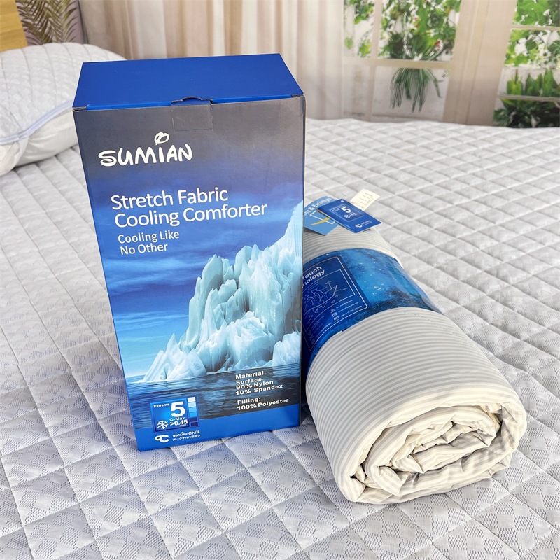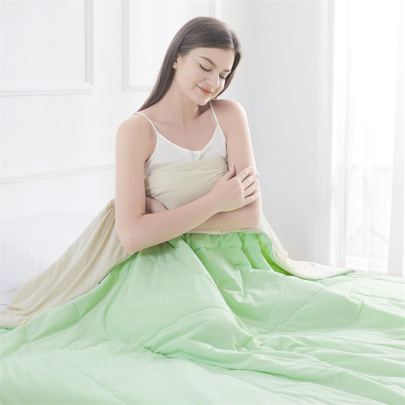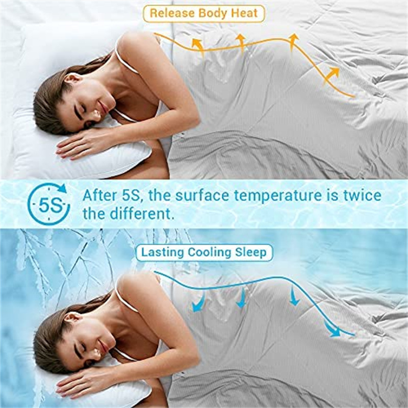 ●超柔软亲肤:这款夏被的两面均采用日本冷却纤维和玉基纤维制成,使冷却被子超级柔软,丝滑,不会静电。 柔软的被子在炎热的夜晚可以舒缓和镇静您的感觉,并伴您熟睡舒适。 此外,我们非常重视产品的质量和安全性,敏感肌肤友好,因此我们的凉爽被子也适合裸体睡眠。
