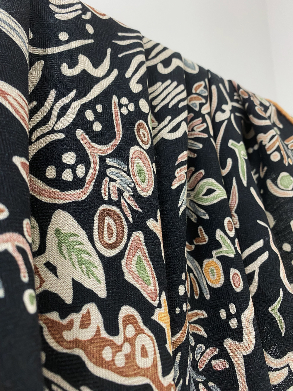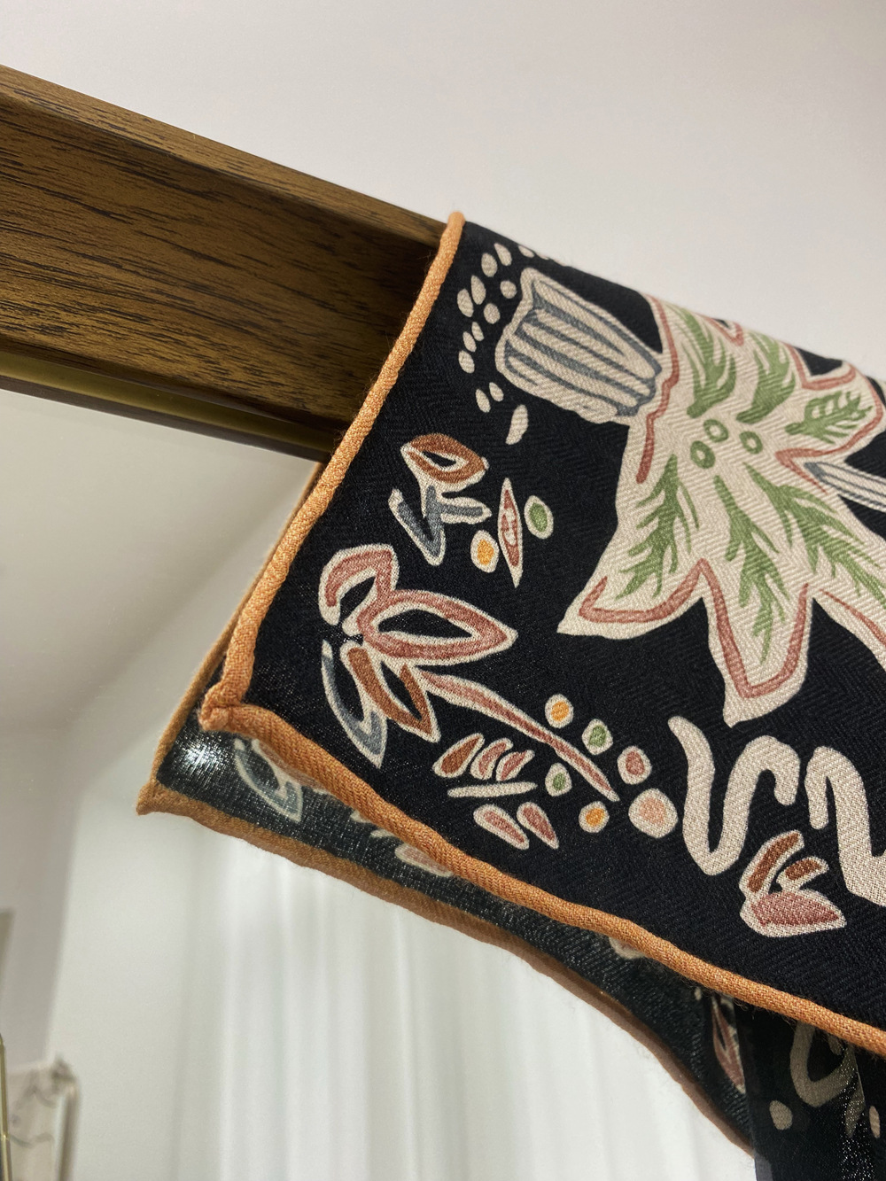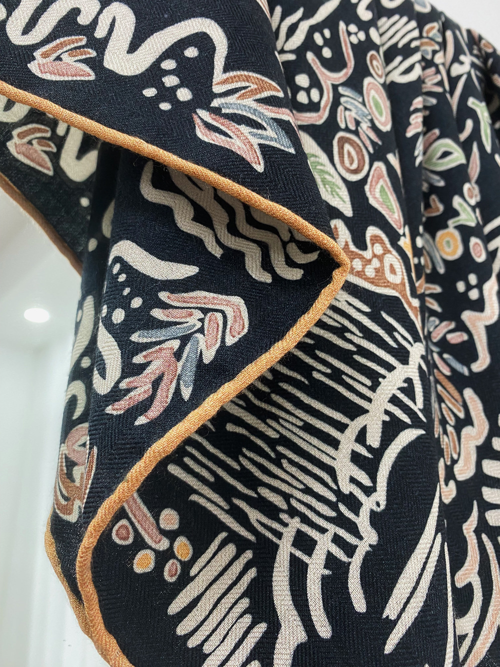 • 검은 배경 꽃 양면 인쇄 실크 울 70