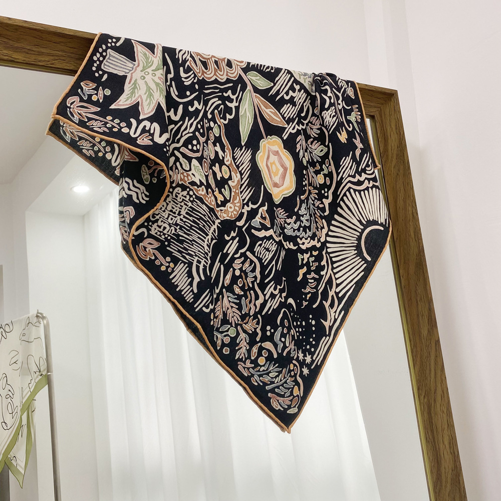 양면 인쇄 실크 울 70 미디엄 스퀘어 스카프 여성용 봄과 가을 스카프 유행 모든 일치 서양 스타일 따뜻한 검은 바닥