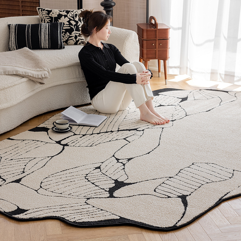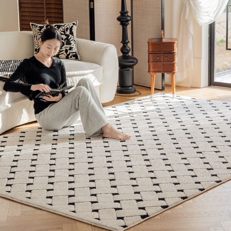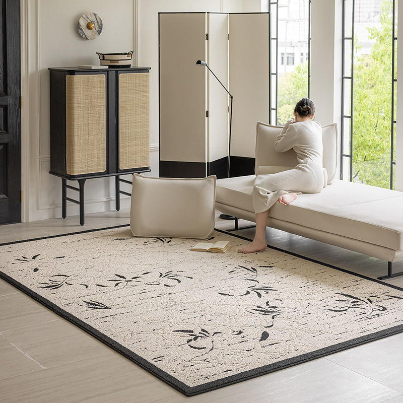 Caviosen奶油风硅藻丝客厅地毯防水防污可擦免洗轻奢高端沙发地垫