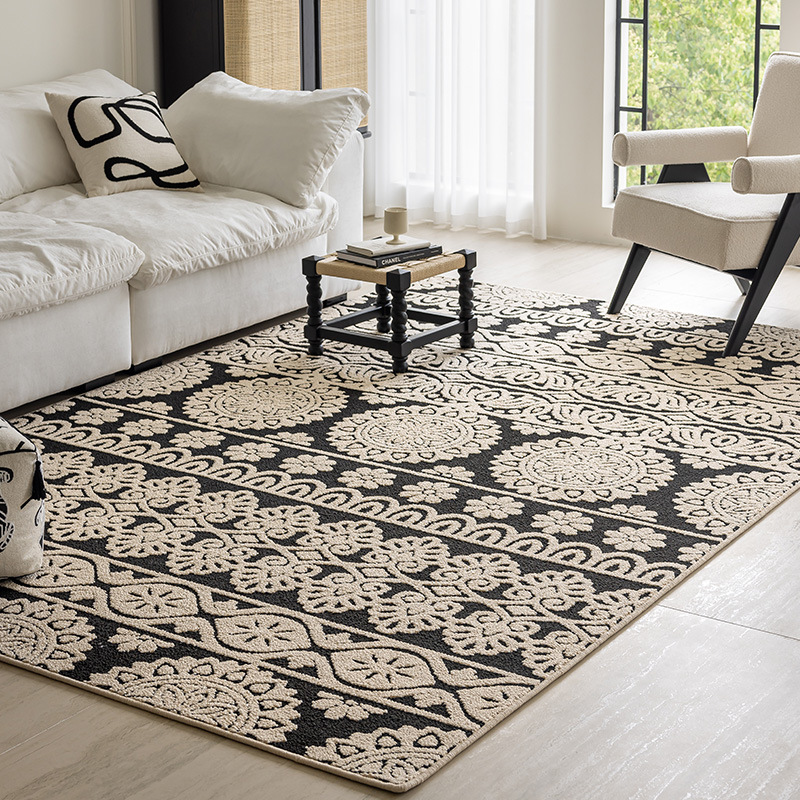美式轻奢立体浮雕手工地毯ins法式奶油风地垫卧室客厅沙发茶几毯