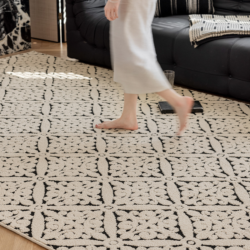 法式奶油系客厅地毯中古风纯色浮雕茶几毯卧室衣帽间高级感床边毯