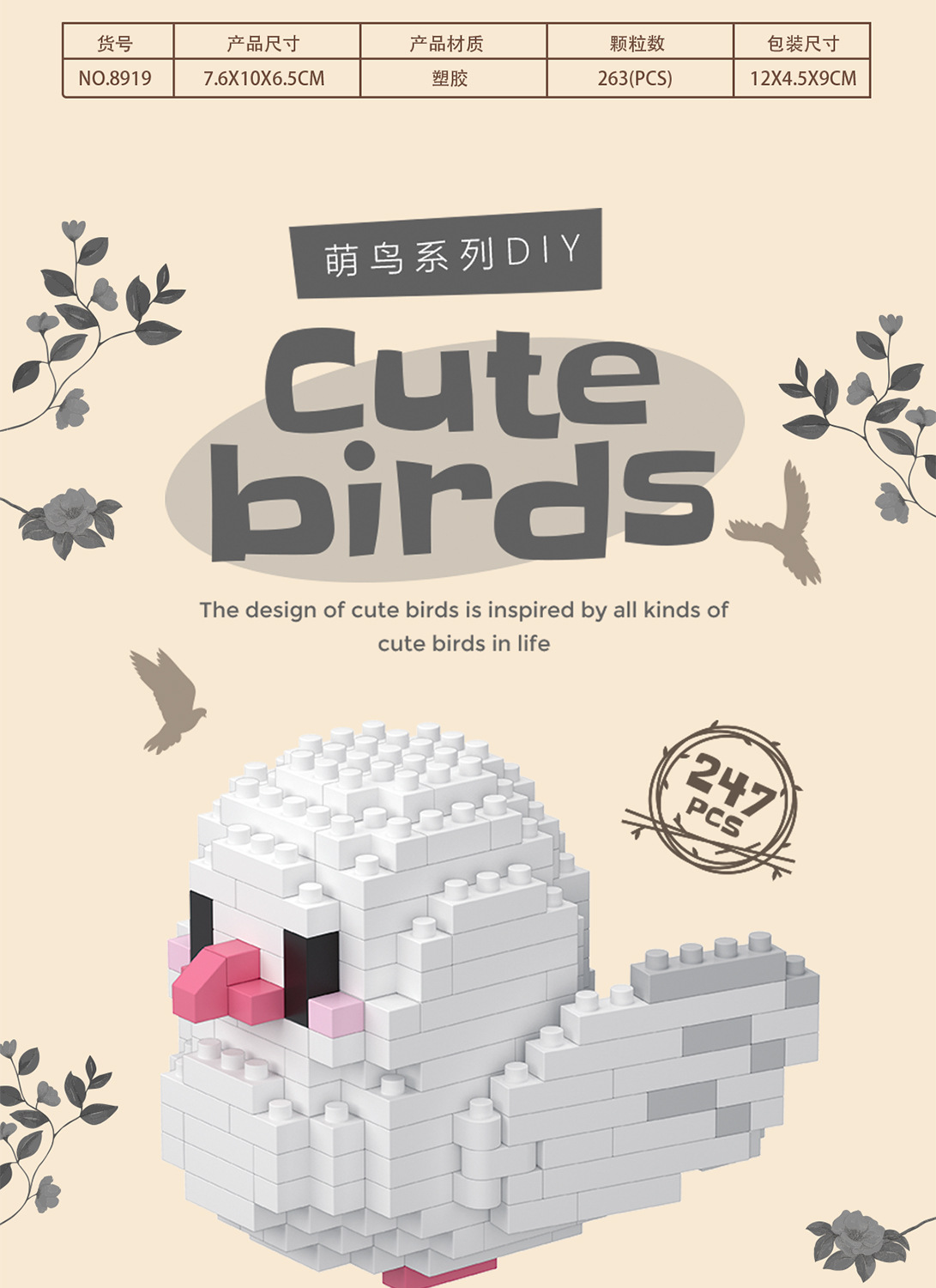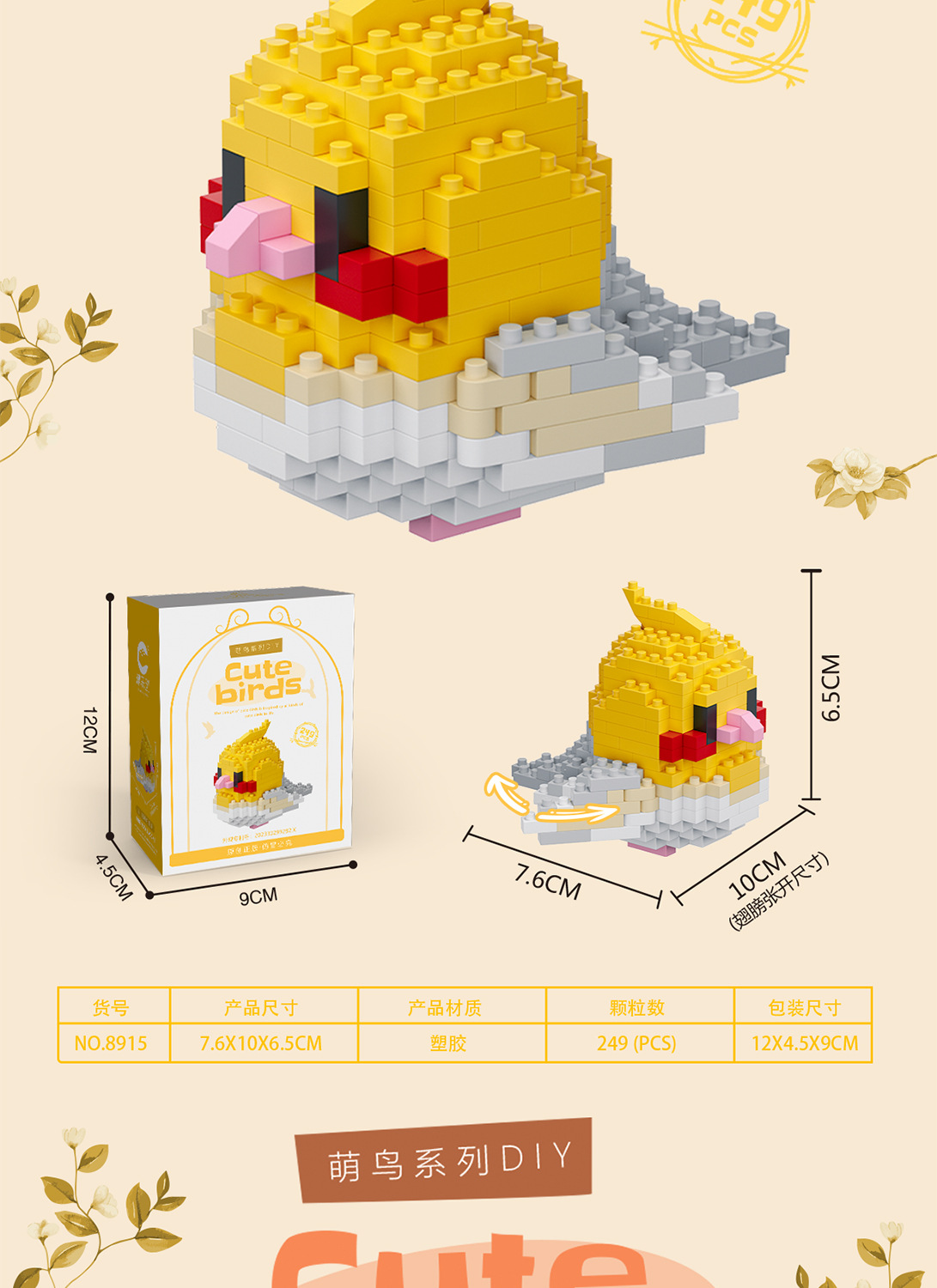 Chao Le Chuang 작은 입자 앵무새 모에 새 시리즈 조립 교육 완구 8909-8920 도매