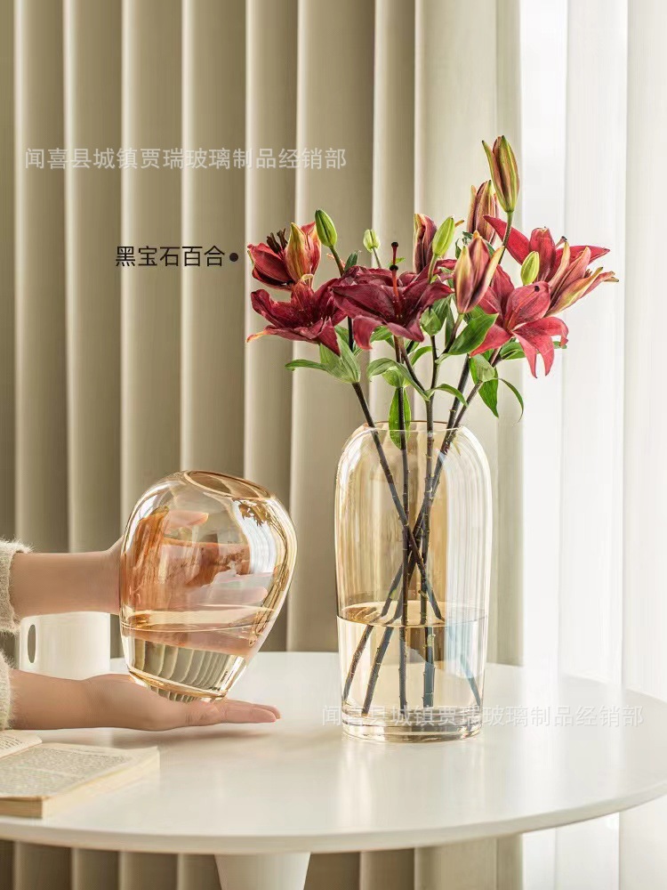 꽃병 장식품 거실 꽃 배열 투명 유리 인터넷 빨간 백합 꽃 장미 수경 테이블 장식품스토어 가기