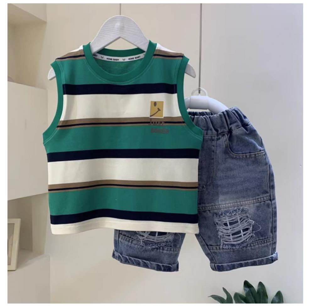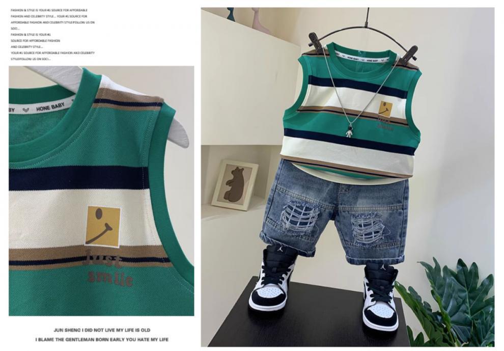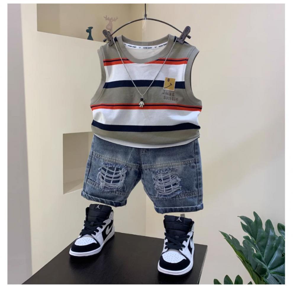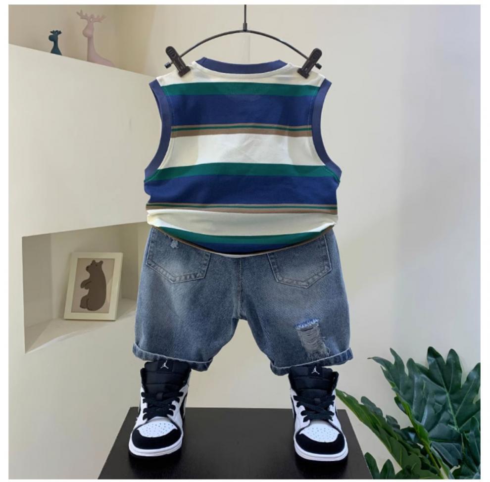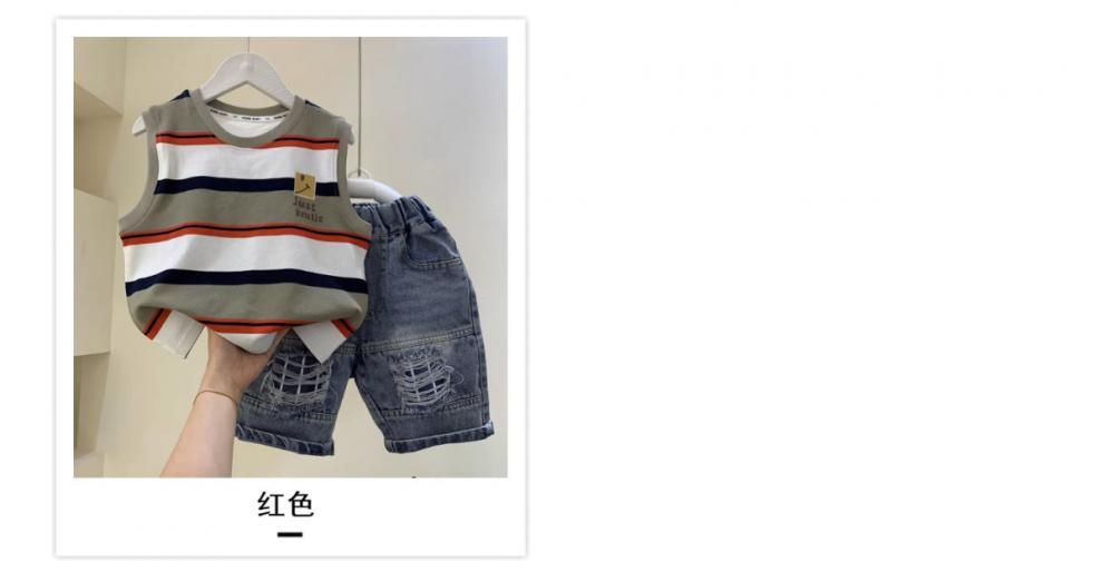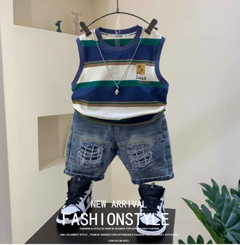 소년 여름 조끼 세트 23 새로운 아기 온라인 연예인 거리 민소매 옷 어린이 한 팬 파이 슈아이 투피스 세트