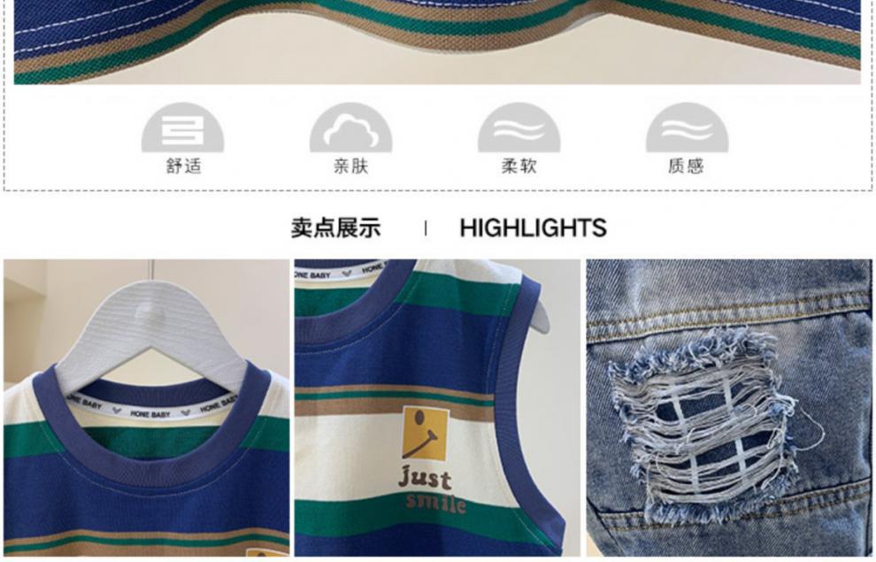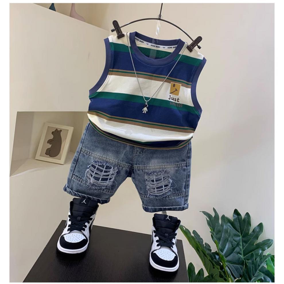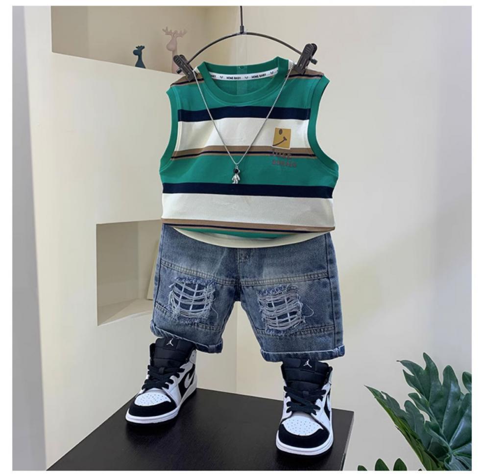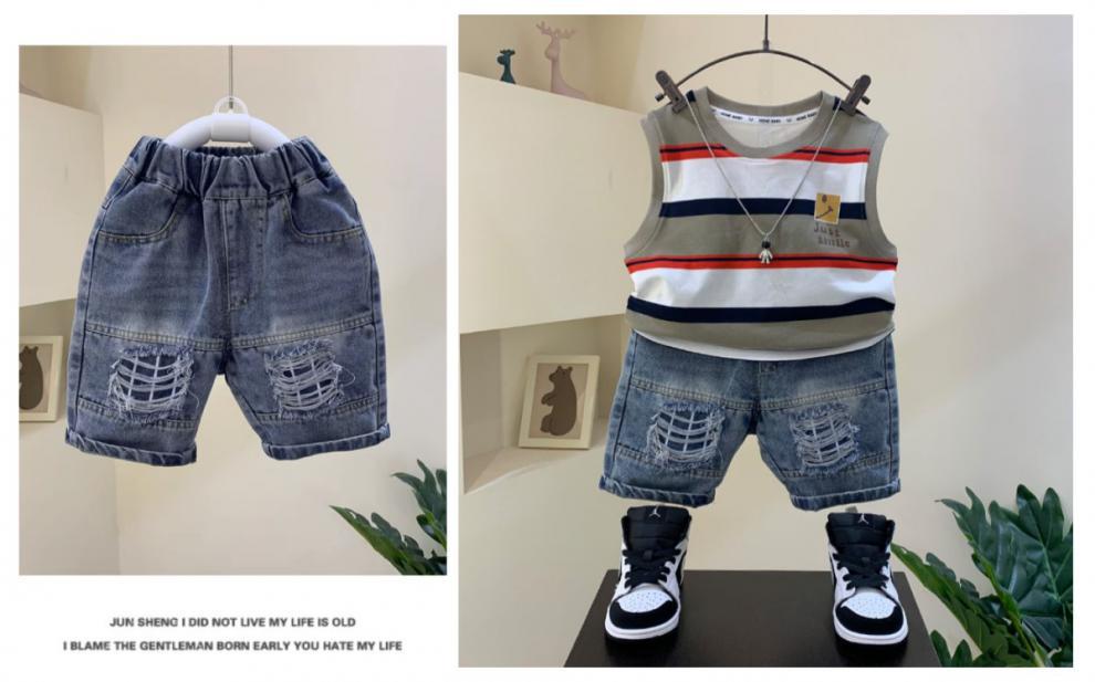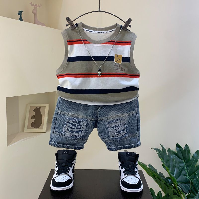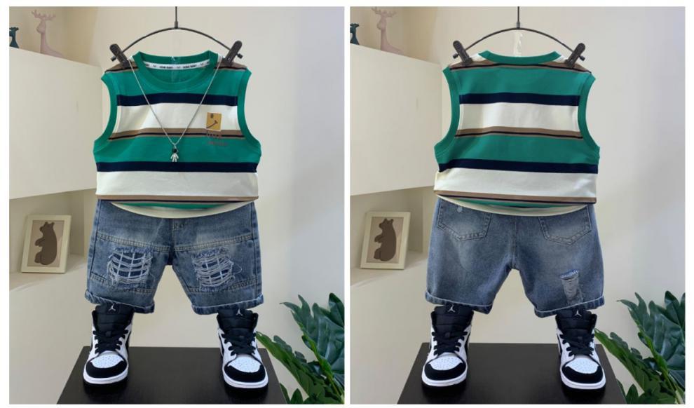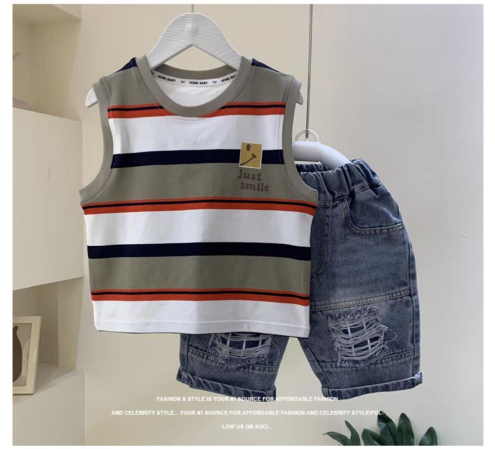 소년 여름 조끼 세트 23 새로운 아기 온라인 연예인 거리 민소매 옷 어린이 한 팬 파이 슈아이 투피스 세트