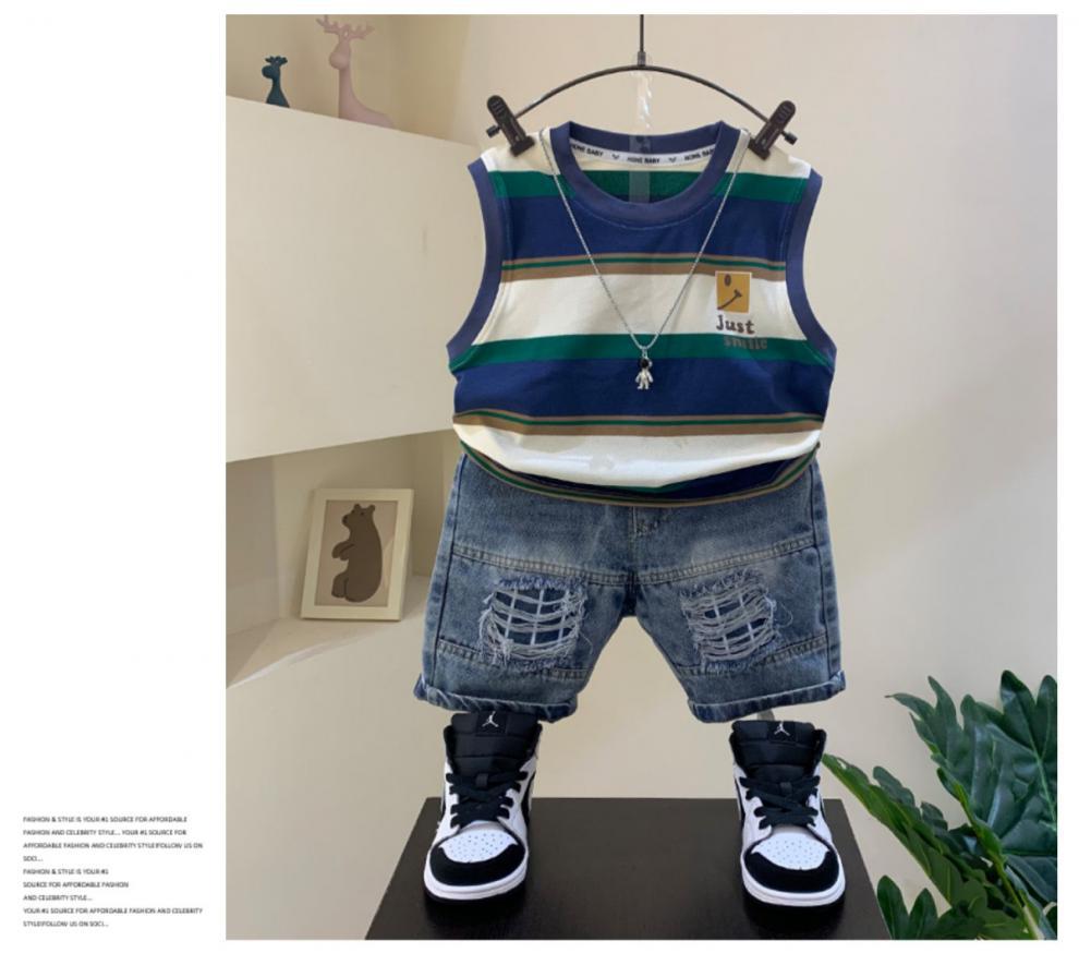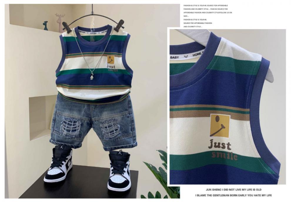소년 여름 조끼 세트 23 새로운 아기 온라인 연예인 거리 민소매 옷 어린이 한 팬 파이 슈아이 투피스 세트스토어 가기