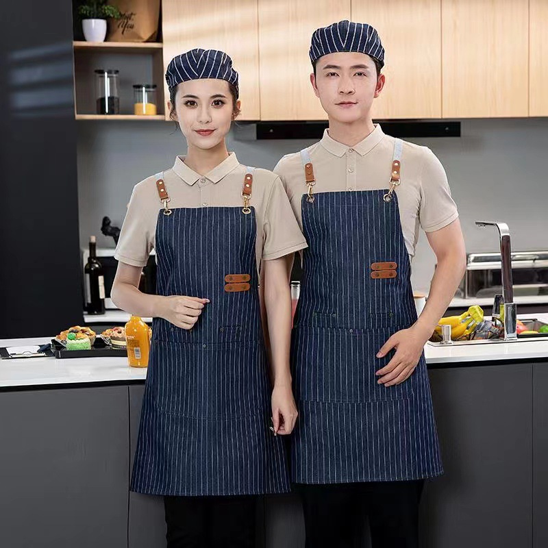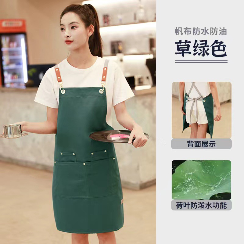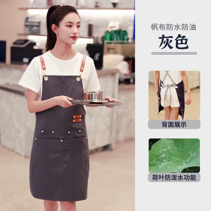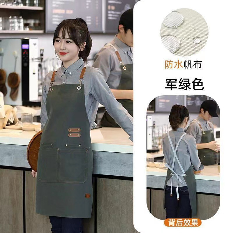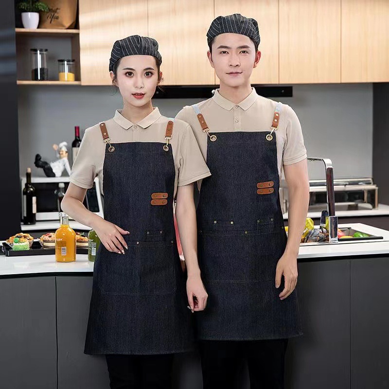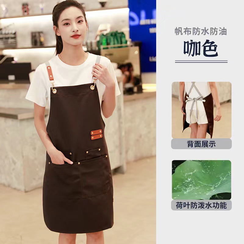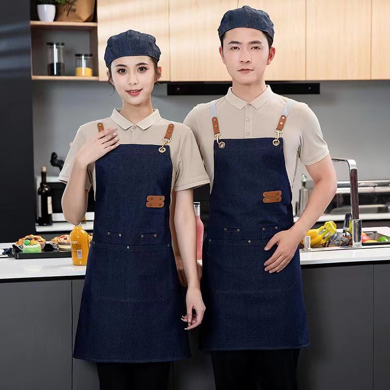 무료 인쇄 로고 방수 캔버스 앞치마 데님 베이킹 앞치마 우유 차 가게 꽃 가게 커피 특수 작업복