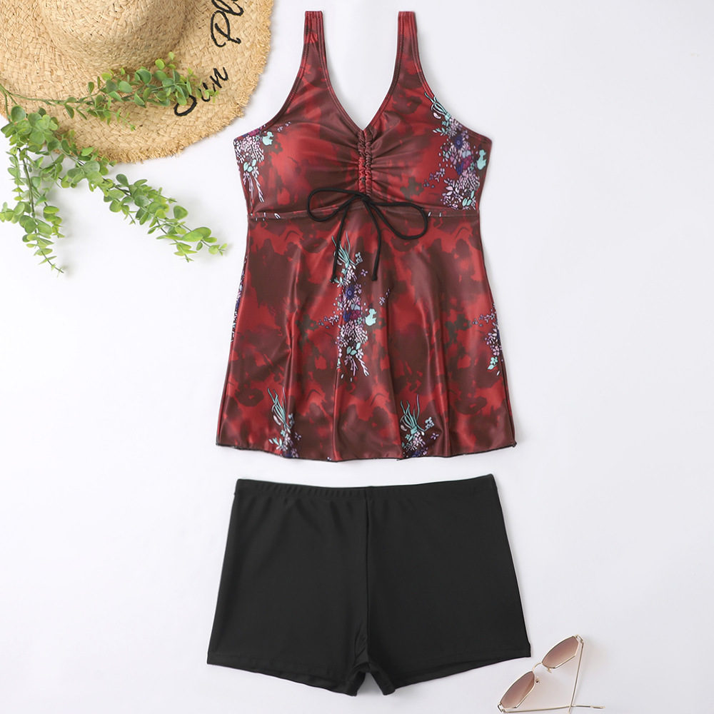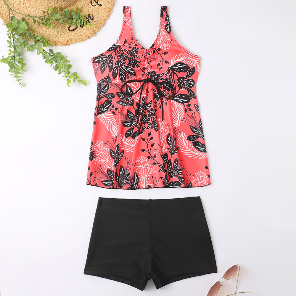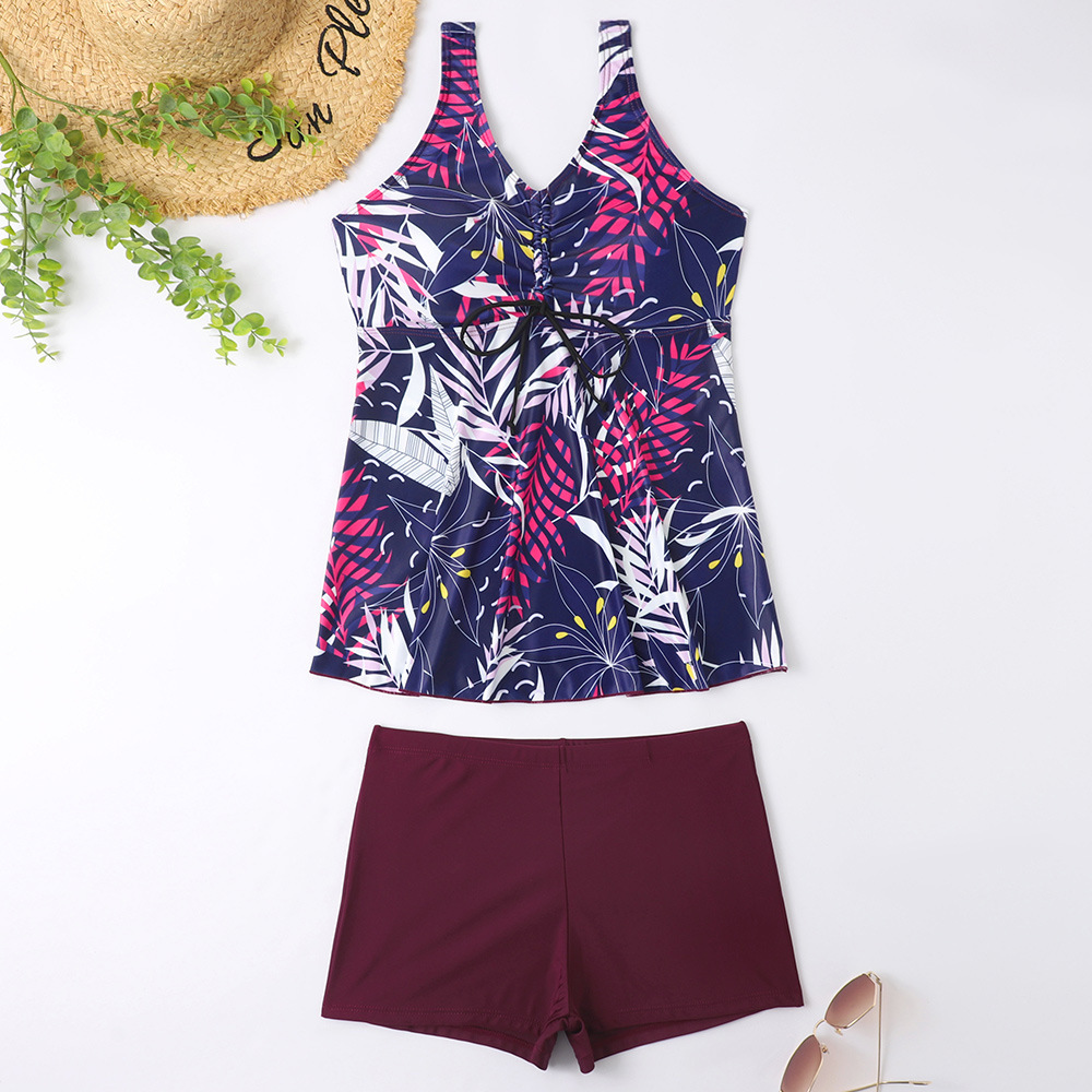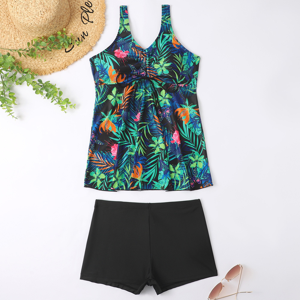 아마존 수영 원피스 플러스 사이즈 분할 새로운 수영복 단색 인쇄 배꼽 취재 보수적 인 섹시한 복서 여러 색상