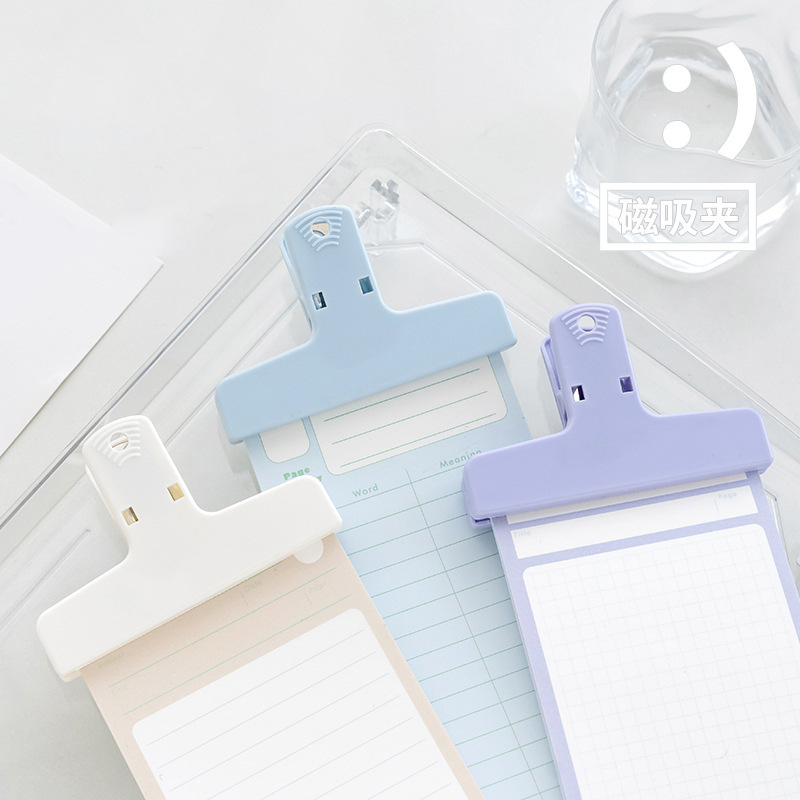 Ins 바람 플라스틱 마그네틱 핸드 계정 클립 간단하고 편리한 사무실 폴더 롱 테일 노트 클립 마그네틱 클립 도매스토어 가기