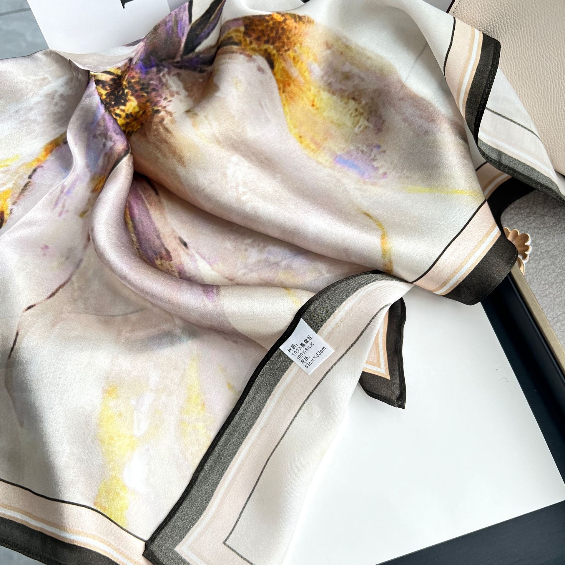 베이지 봄과 가을 여름 모든 경기 100 뽕나무 실크 스카프 여성용 작은 사각 스카프 장식 실크 작은 스카프 얇은 스카프