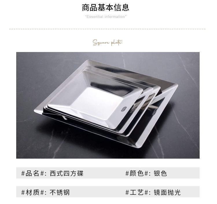 특두꺼운 스테인리스 사각 접시, 평평한 바닥 접시, 디저트/케이크 접시, 호텔 상업용 스테이크/바베큐 접시, 고온 내성스토어 가기