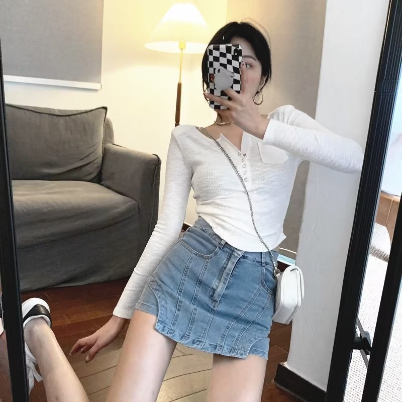 불규칙한 데님 짧은 바지 스커트 여성의 봄과 여름 새로운 하이 웨이스트 플러스 사이즈 슬림핏 힙 퀼로트 빈티지 프라이드 스트리트 A-라인 스커트스토어 가기