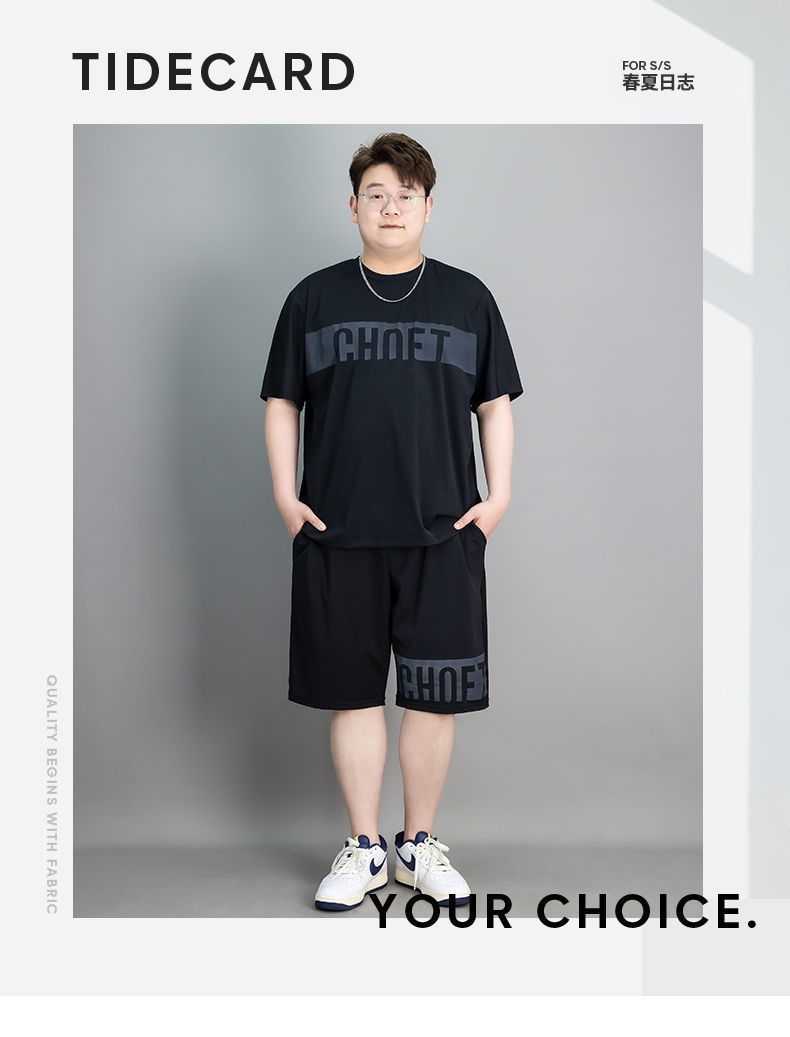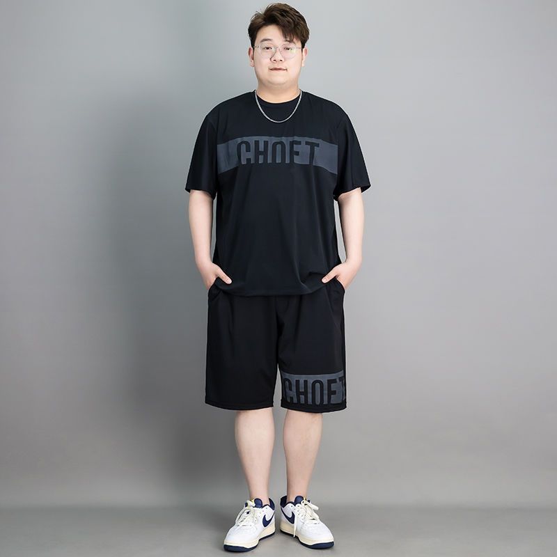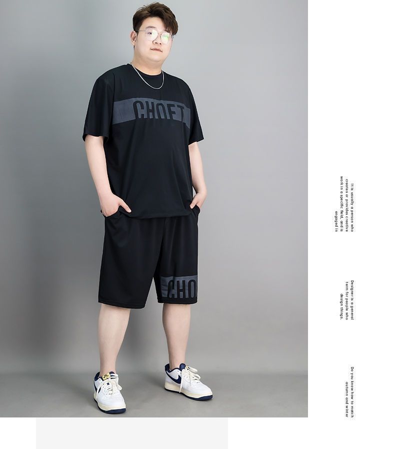 뚱뚱한 남자 스포츠 세트 남자 플러스 사이즈 반팔 남자 의류 세트 느슨한 플러스 사이즈 빠른 건조 옷 패션