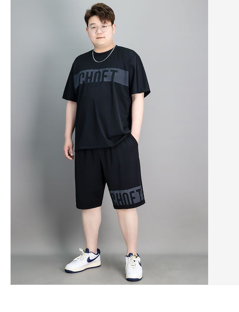 뚱뚱한 남자 스포츠 세트 남자 플러스 사이즈 반팔 남자 의류 세트 느슨한 플러스 사이즈 빠른 건조 옷 패션스토어 가기