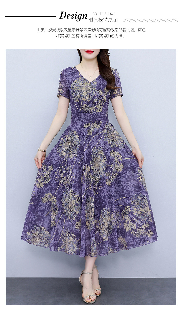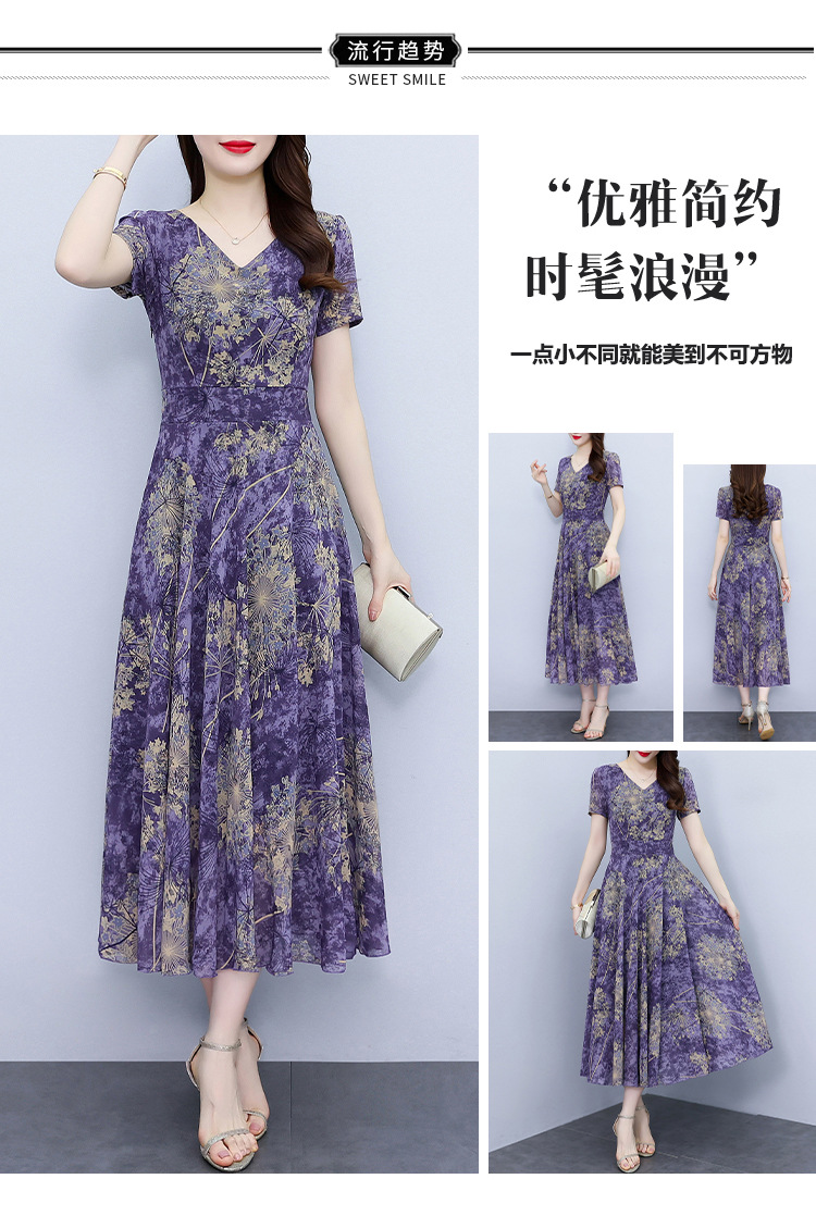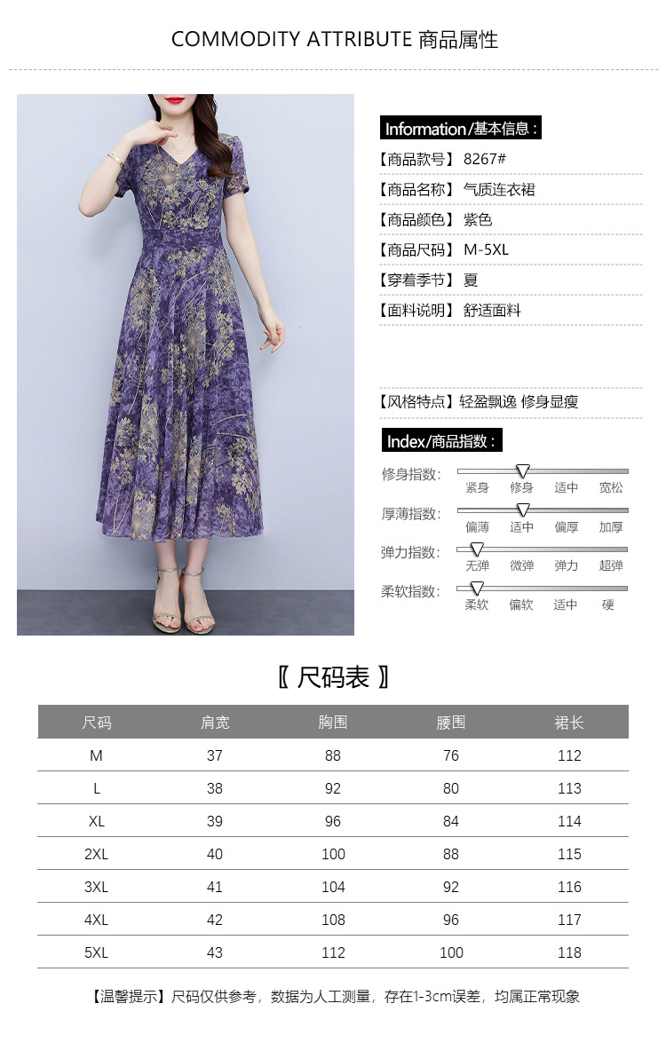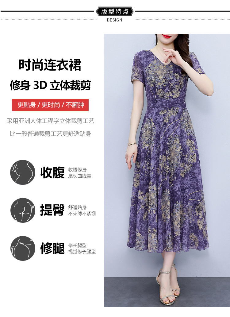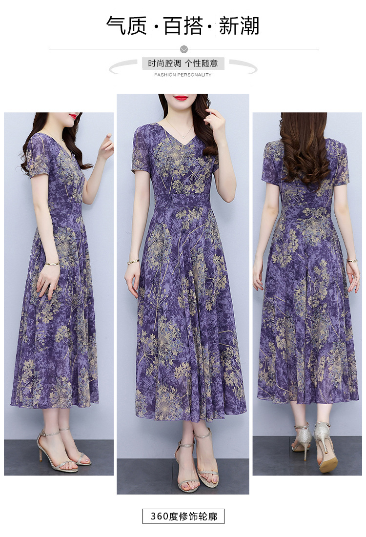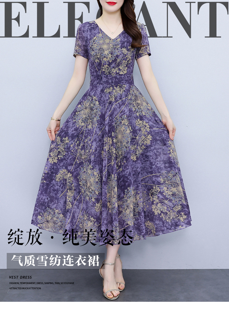 새로운 여자의 2023 여름 쉬폰 꽃 원피스 패션 우아한 꽉 허리 슬리밍 플러스 사이즈 여자의 원피스스토어 가기