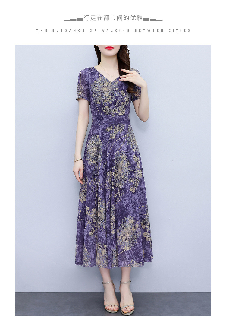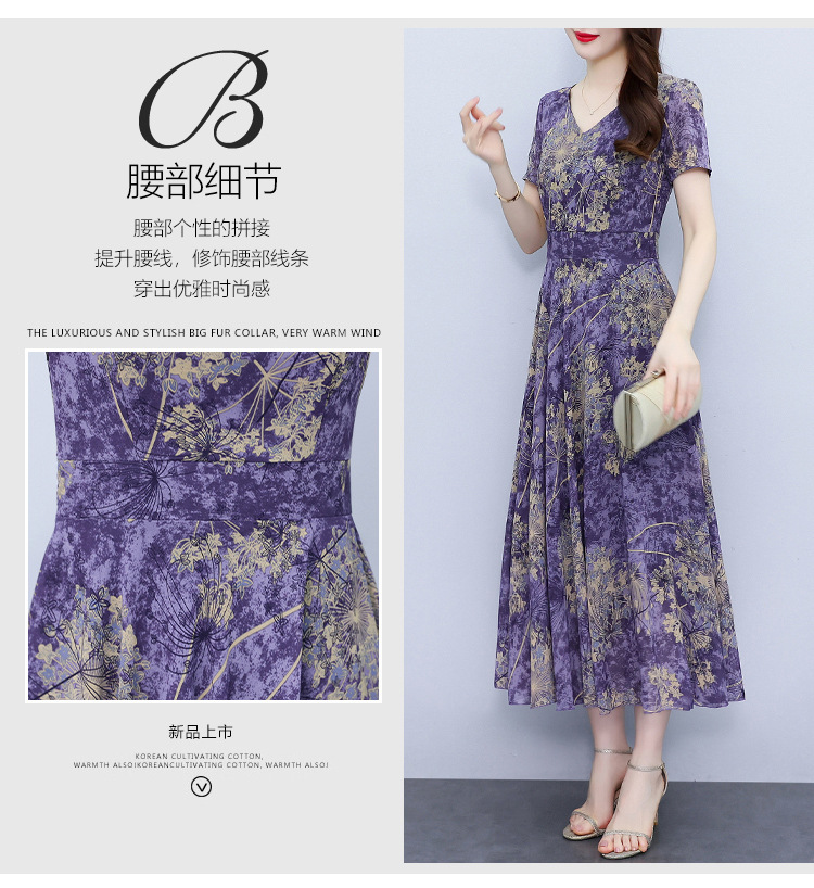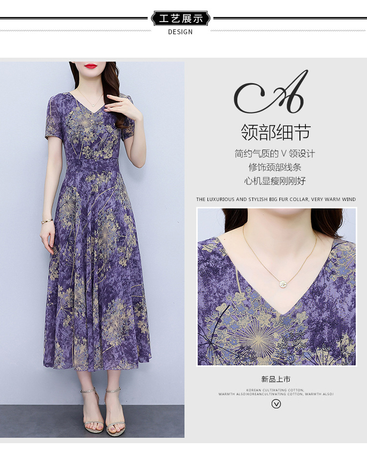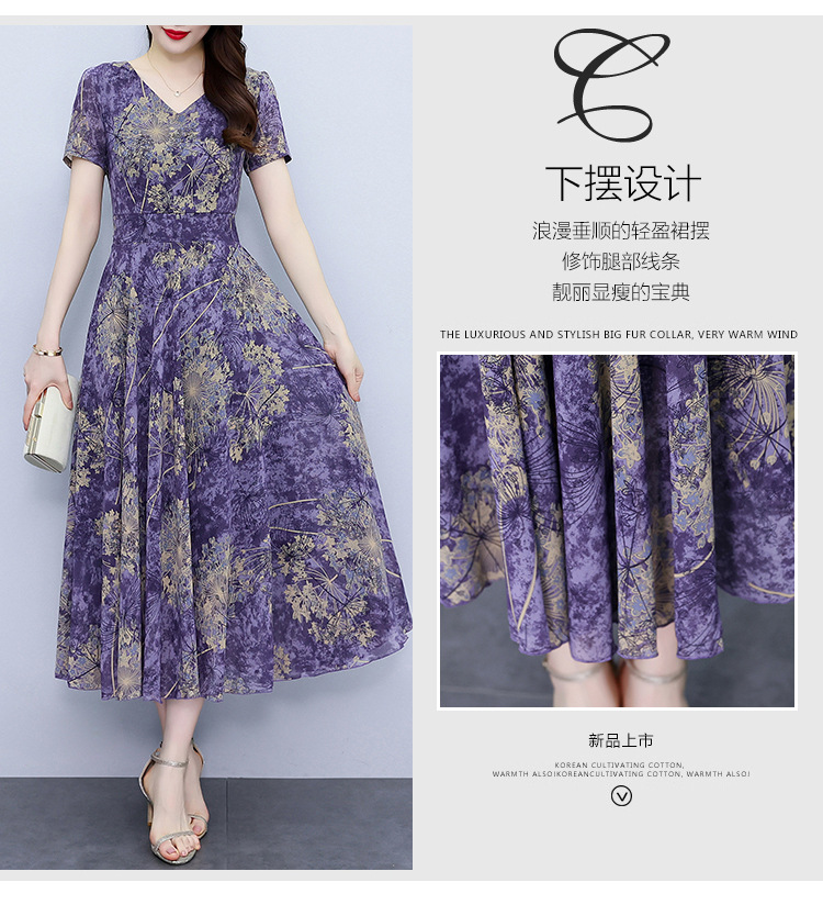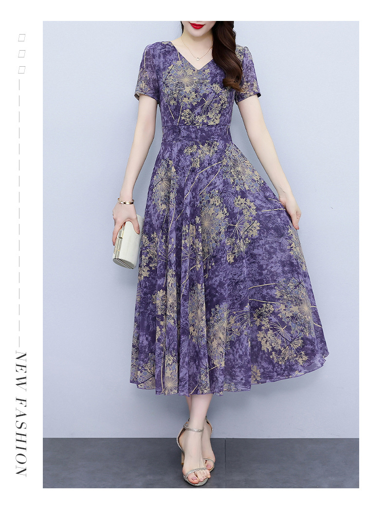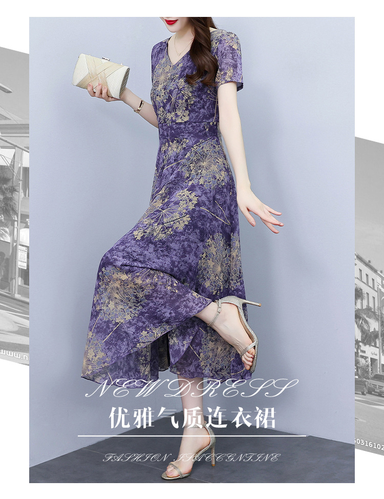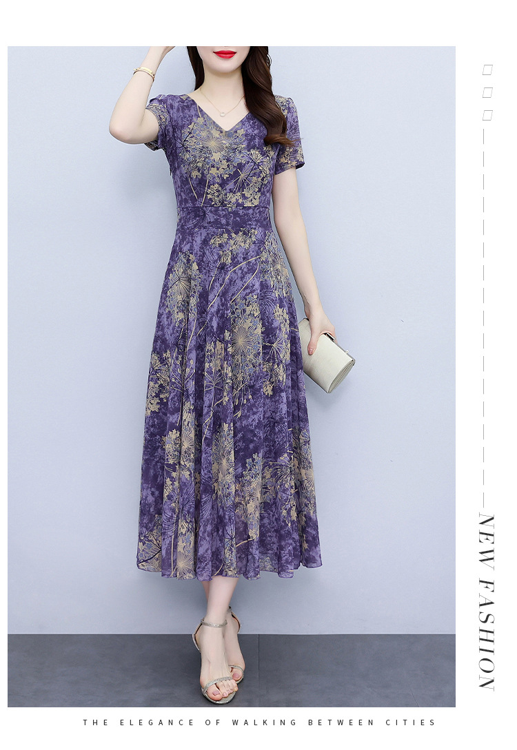 새로운 여자의 2023 여름 쉬폰 꽃 원피스 패션 우아한 꽉 허리 슬리밍 플러스 사이즈 여자의 원피스스토어 가기