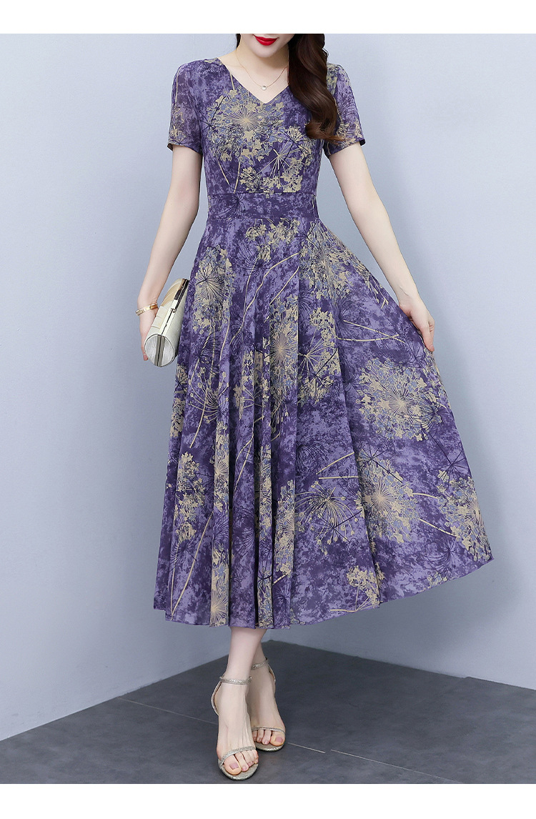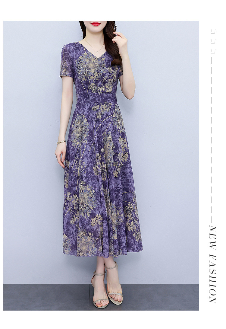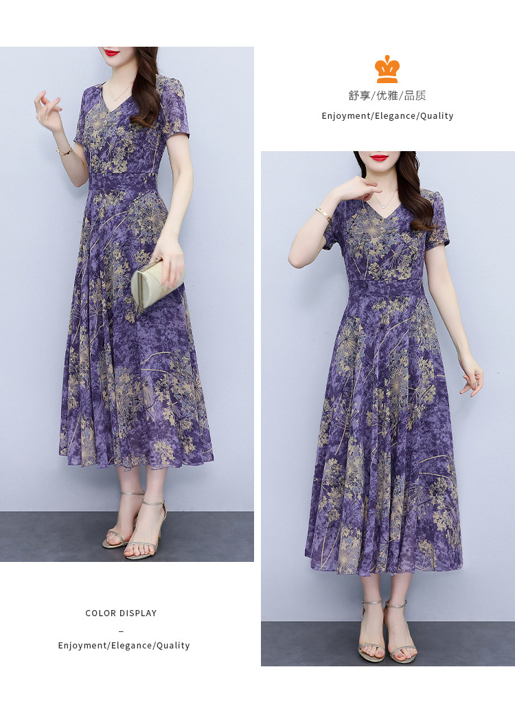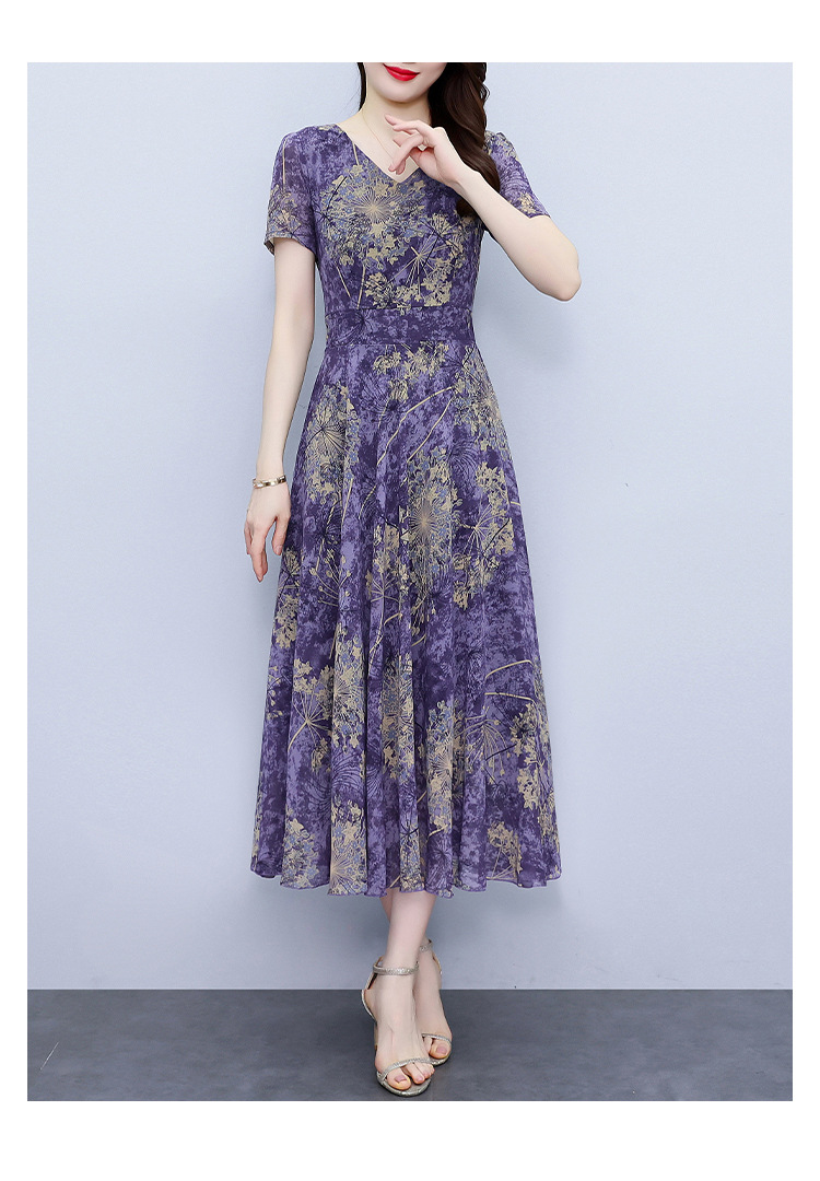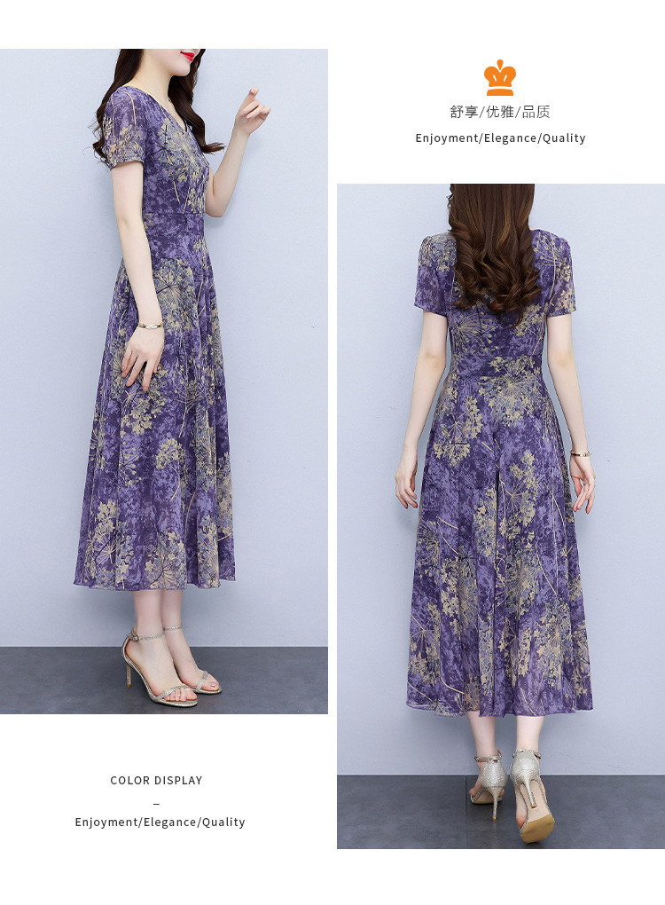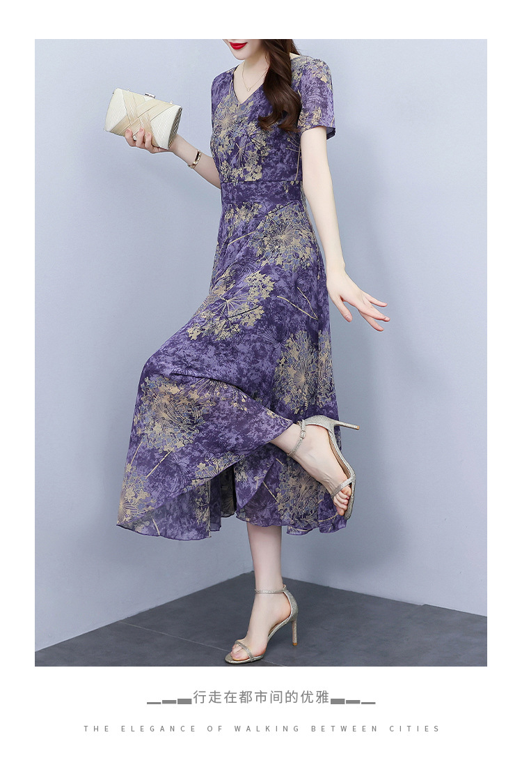 새로운 여자의 2023 여름 쉬폰 꽃 원피스 패션 우아한 꽉 허리 슬리밍 플러스 사이즈 여자의 원피스스토어 가기