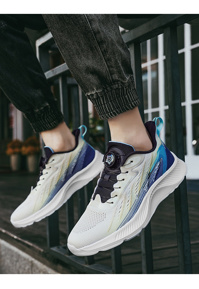2023 신상품 회전 버클 남성 신발 여름 통기성 메쉬 얇은 편안한 캐주얼 러닝 운동화 남성 버튼 신발