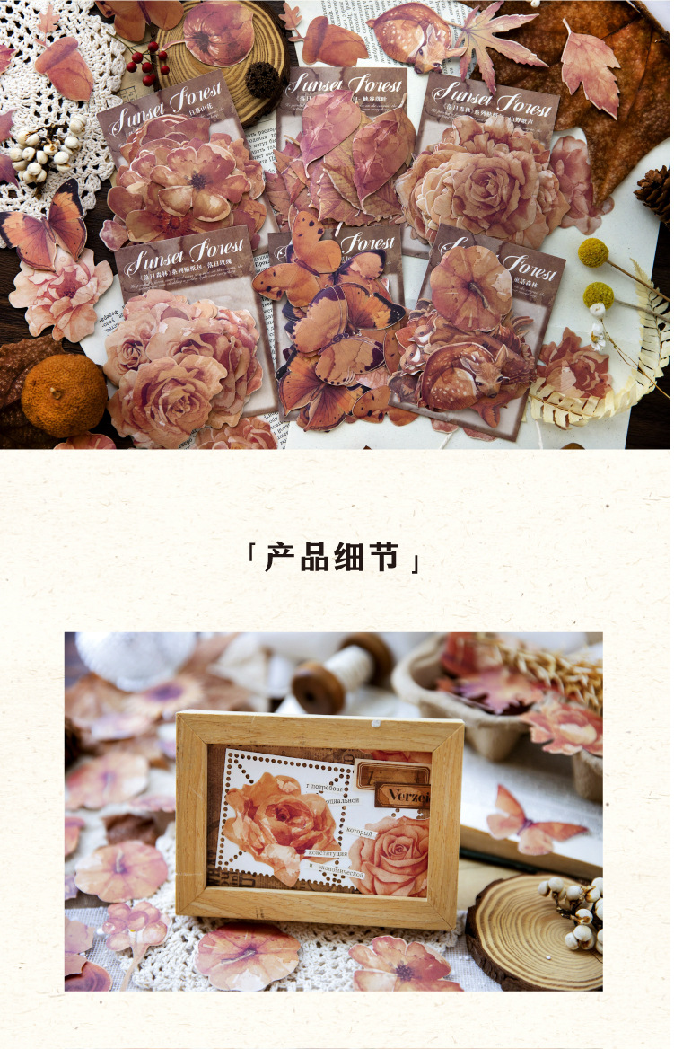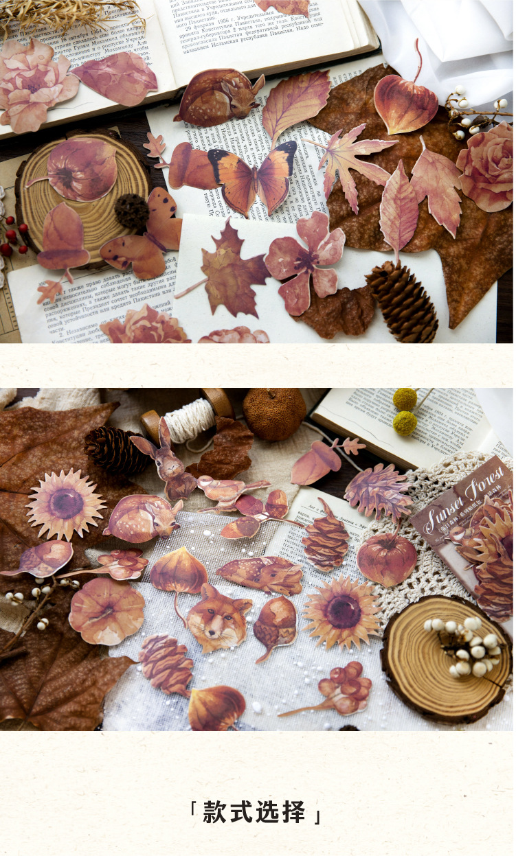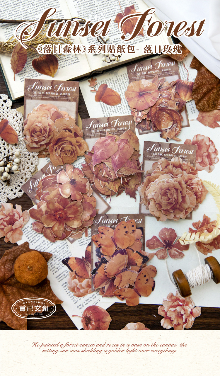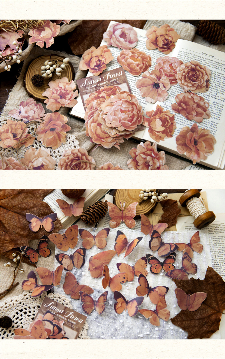 연지 스티커 가방 일몰 숲 시리즈 복고풍 꽃 나비 기본 손 계정 기본 장식 재료 스티커스토어 가기